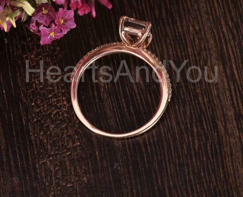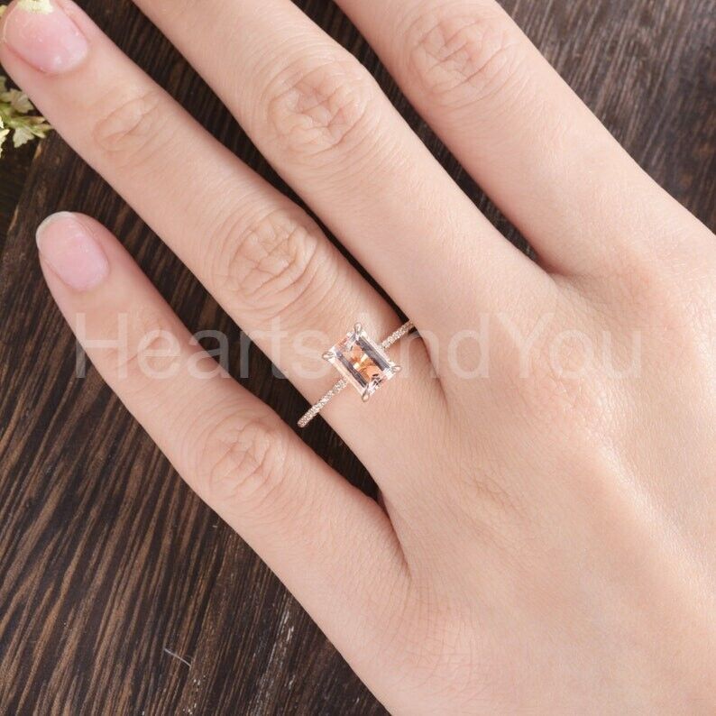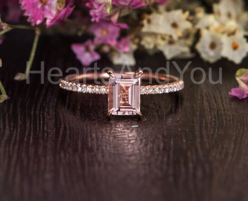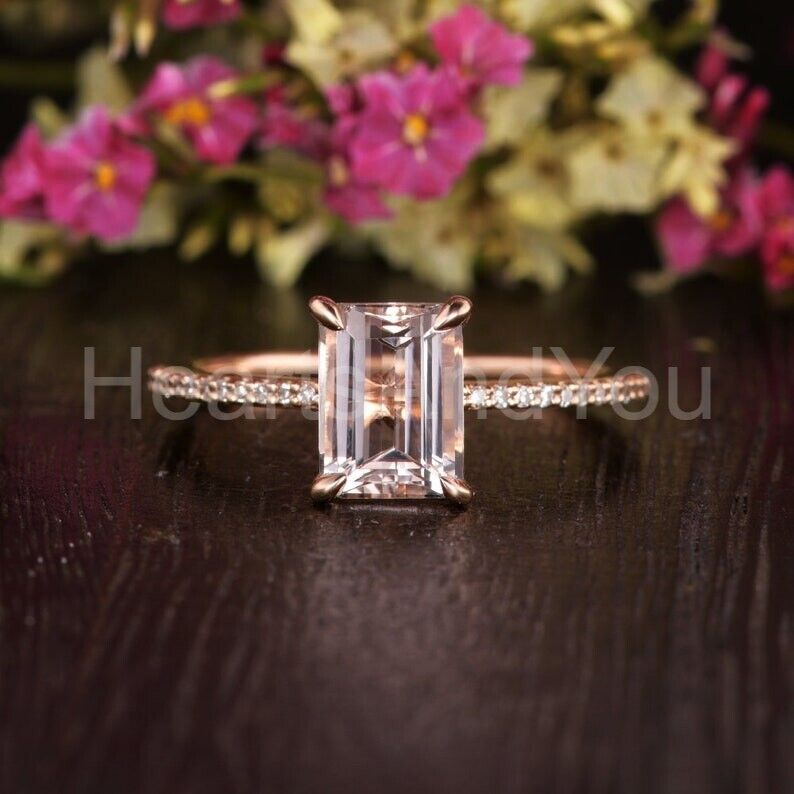 1ct Emerald Cut Simulated Morganite Solitaire Accents Ring 14k Rose Gold Plated