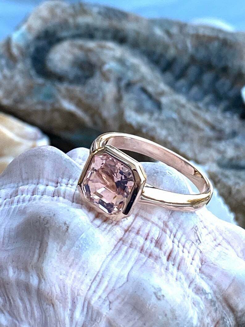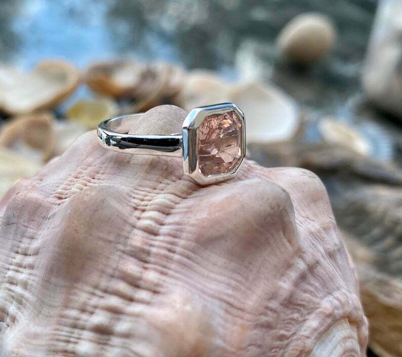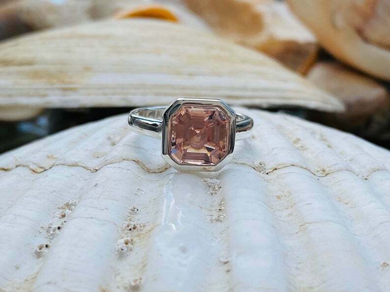 1ct Engagement Ring Asscher Cut Peach Morganite Bridal Set 14k White Gold Finish