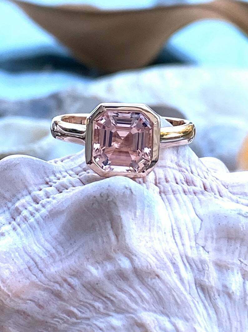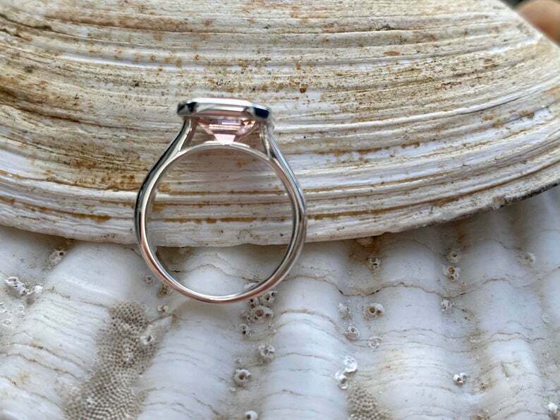 1ct Engagement Ring Asscher Cut Peach Morganite Solitaire 14k White Gold Finish