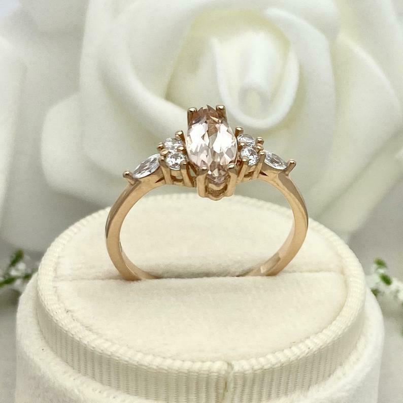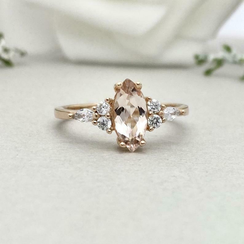 1ct Engagement Ring Marquise Cut Peach Morganite Diamond Petite 14k Yellow Gold Finish