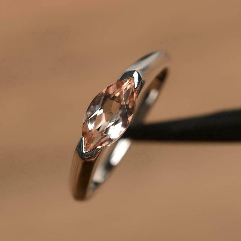 1ct Engagement Ring Marquise Cut Peach Morganite Solitaire 14k White Gold Finish
