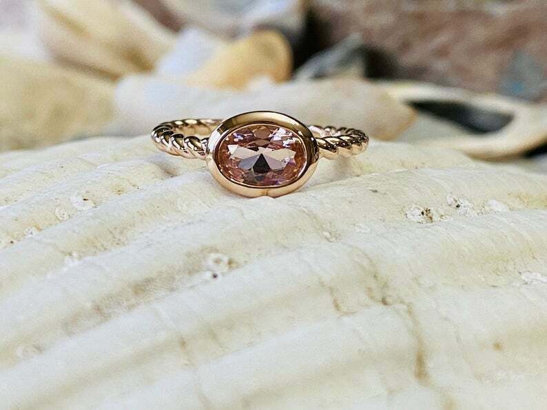 1ct Engagement Ring Oval Cut Peach Morganite Twisted Solitaire 14k Rose Gold Finish