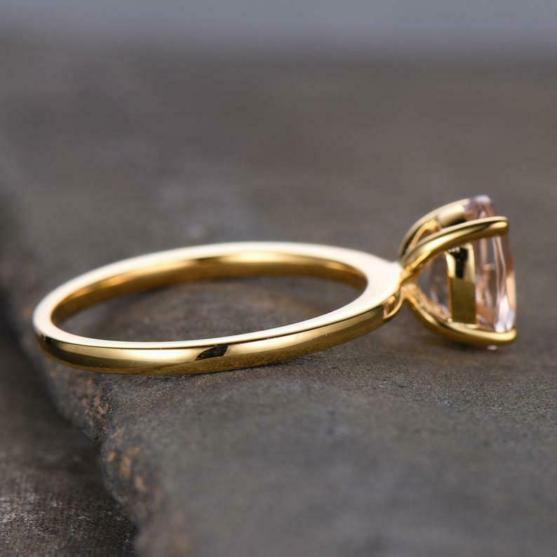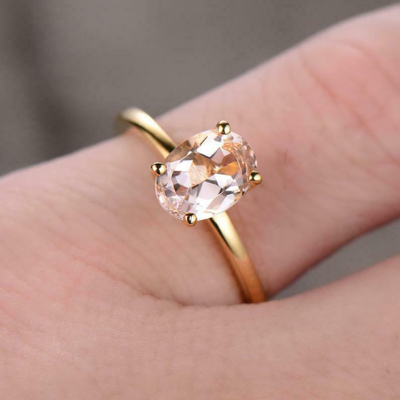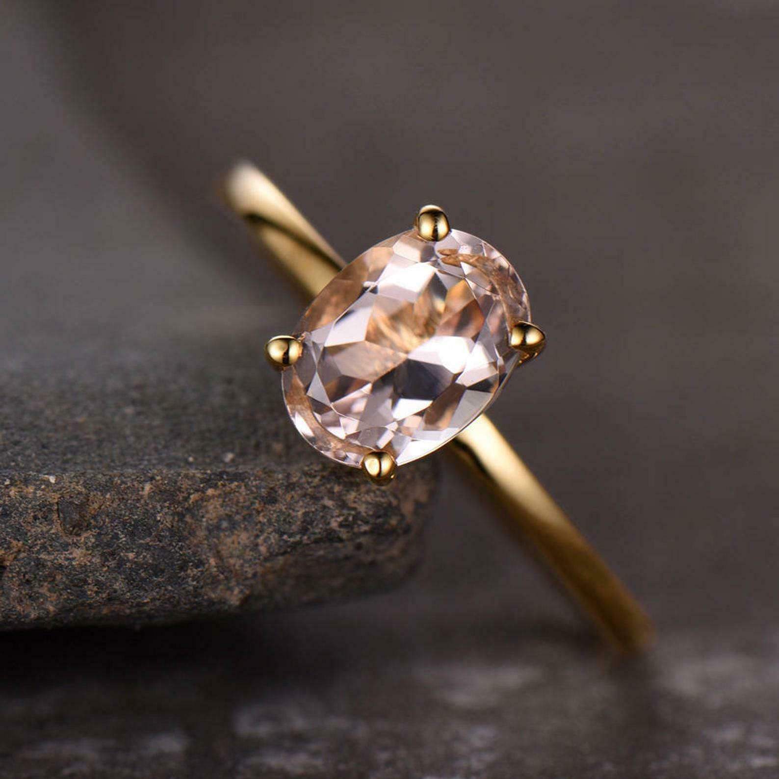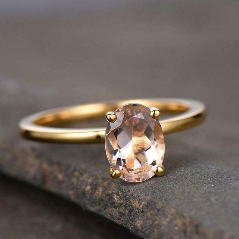 1ct Engagement Ring Oval Cut Peach Morganite Solitaire 14k Yellow Gold Finish
