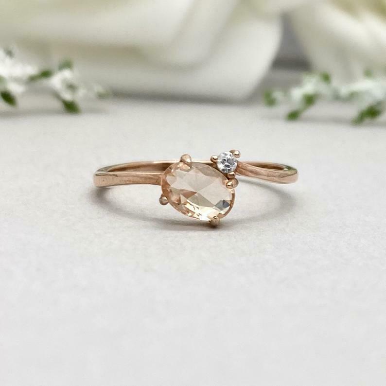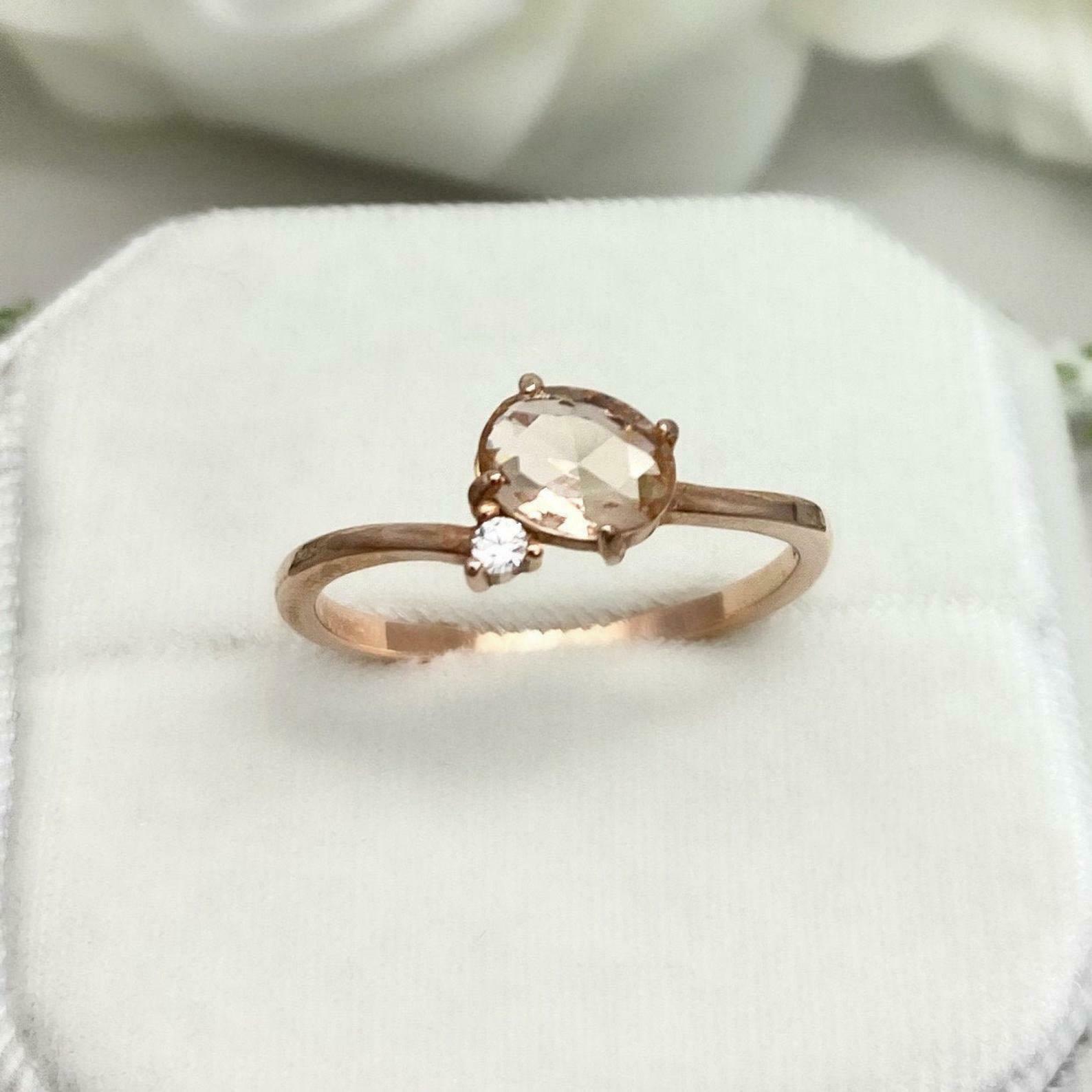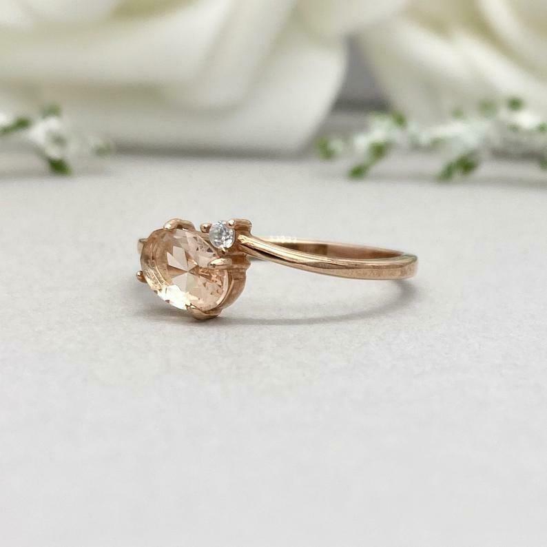 1ct Engagement Ring Oval Cut Peach Morganite Two Stone Bypass 14k Rose Gold Over