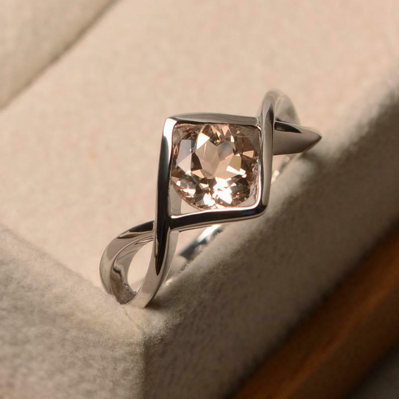 1ct Engagement Ring Round Cut Peach Morganite Infinity Solitaire 14k White Gold Finish