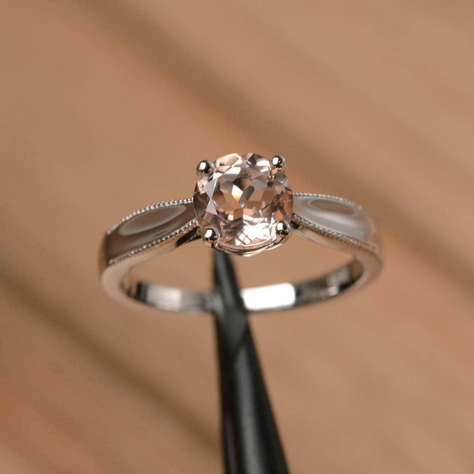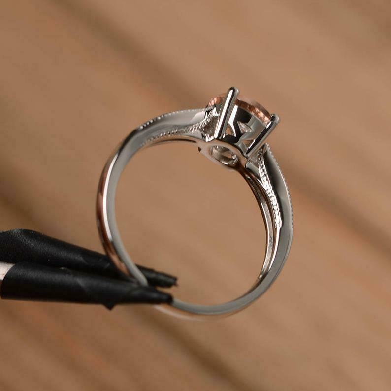 1ct Engagement Ring Round Cut Peach Morganite Solitaire Milgrain 14k White Gold Finish