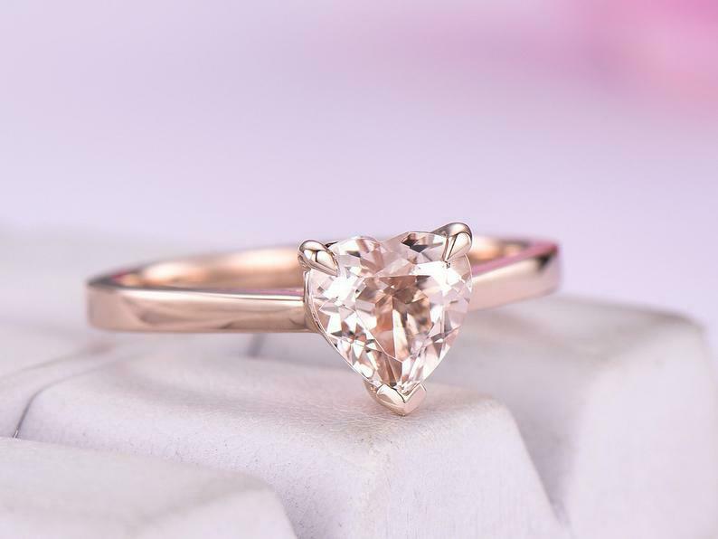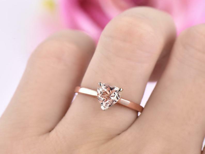 1ct Heart Cut Peach Morganite Engagement Ring Solitaire 14k Rose Gold Finish