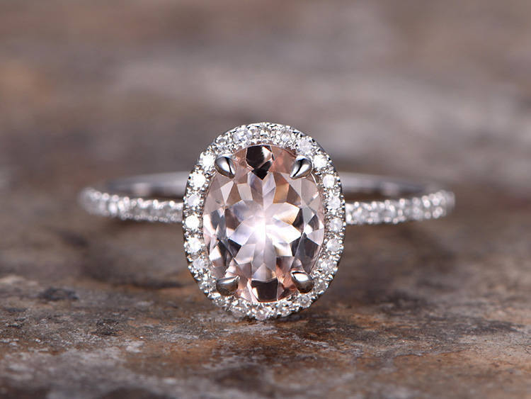 1ct Oval Cut Champagne Morganite Solitaire Engagement Ring 14k White Gold Finish