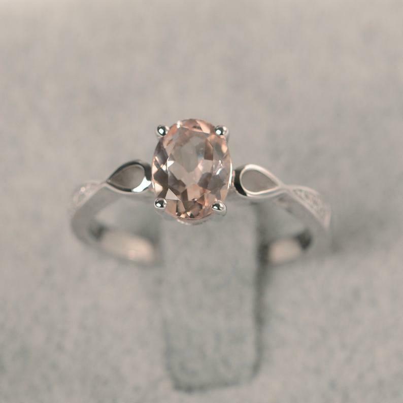1ct Oval Cut Peach Morganite Engagement Ring Solitaire Infinity Shank 14k White Gold Finish