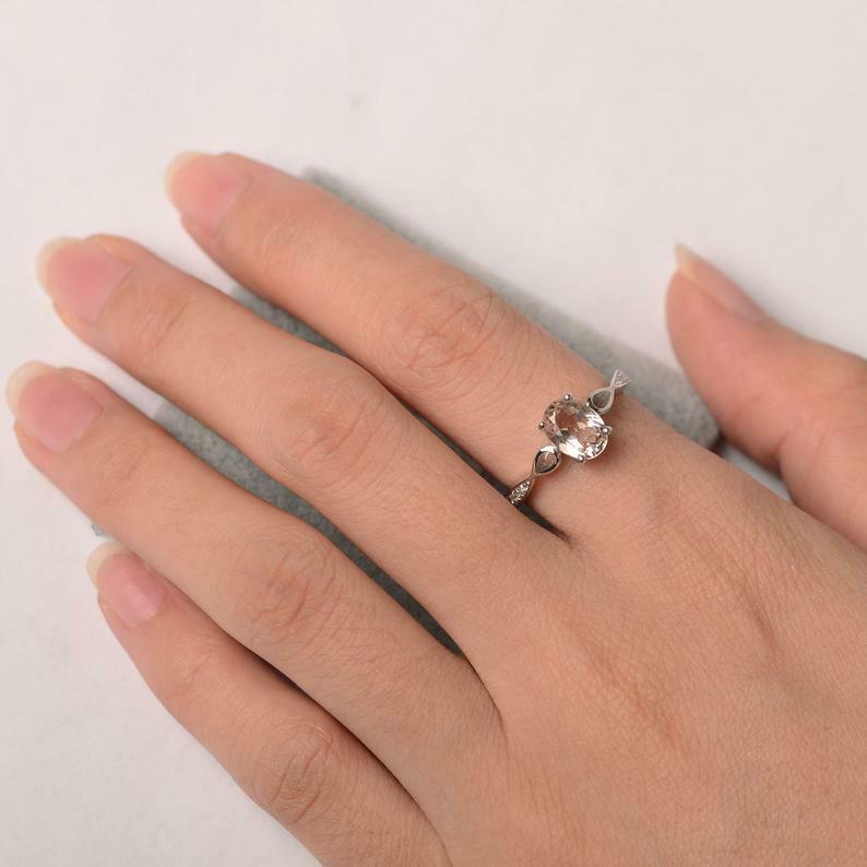 1ct Oval Cut Morganite Engagement Ring Solitaire Infinity 14k White Gold Finish