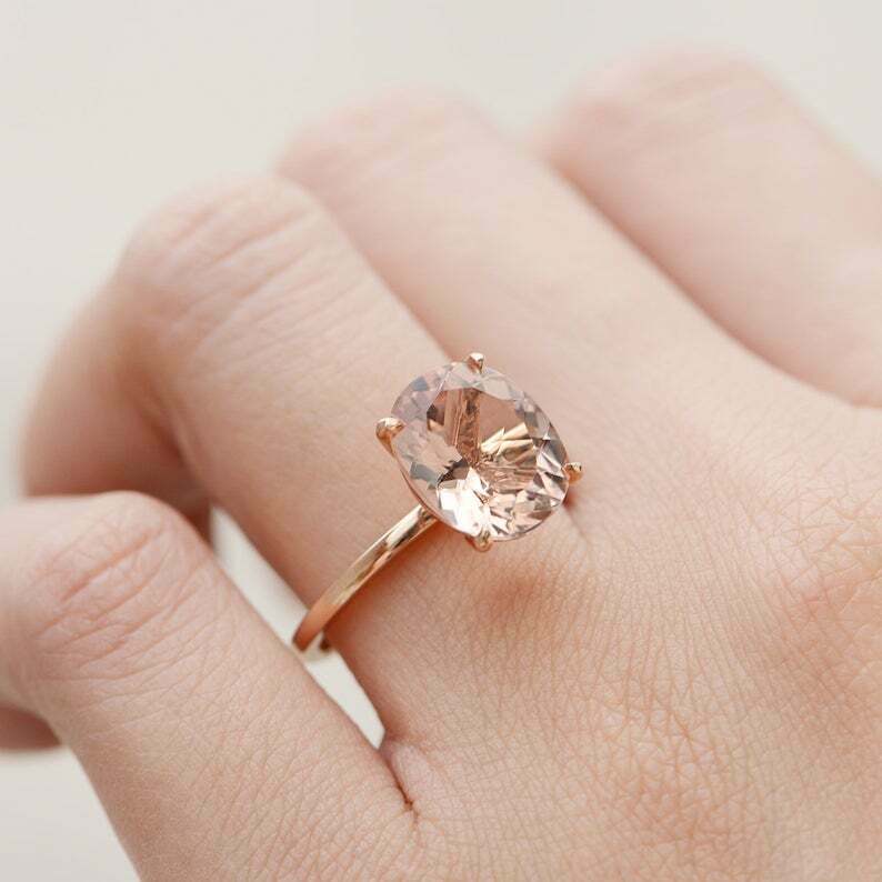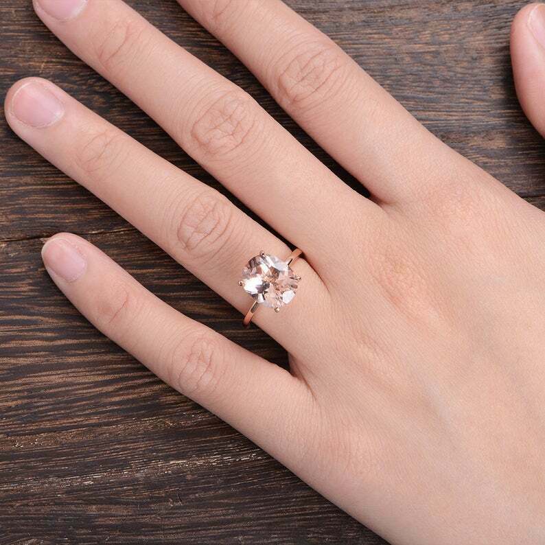 1ct Oval Cut Peach Morganite Solitaire Minimalist Engagement Ring 14k Rose Gold Finish