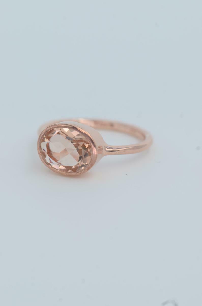 1ct Oval Cut Peach Morganite Bezel Set Solitaire Women Ring 14k Rose Gold Finish
