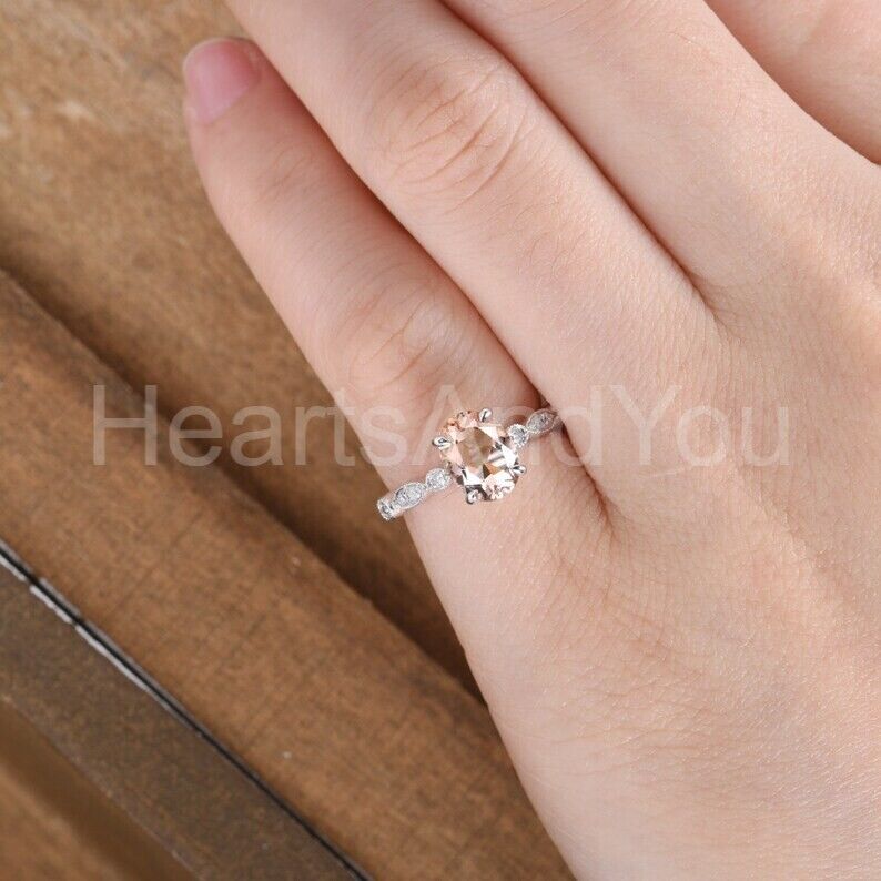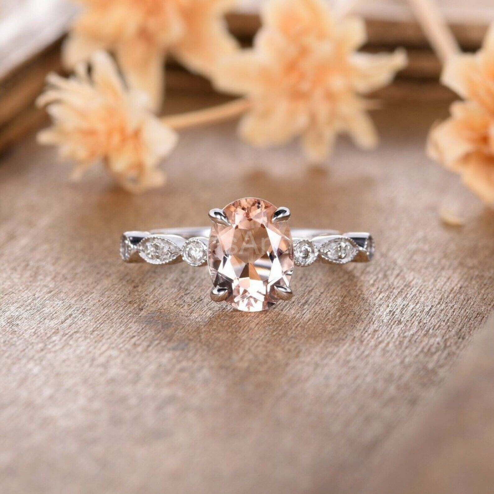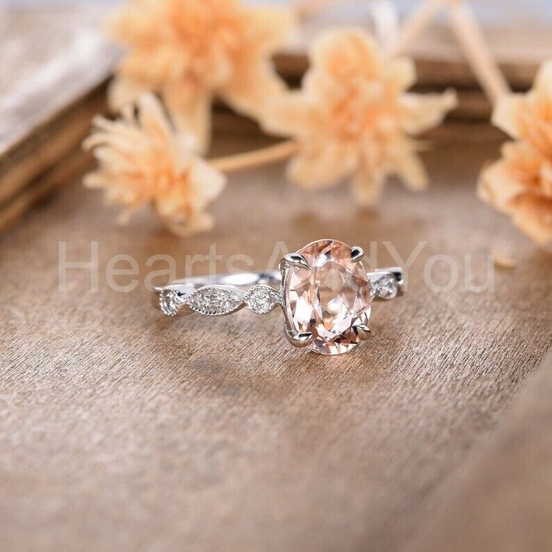 1ct Oval Cut Simulated Morganite Solitaire Accents Ring 14k White Gold Plated