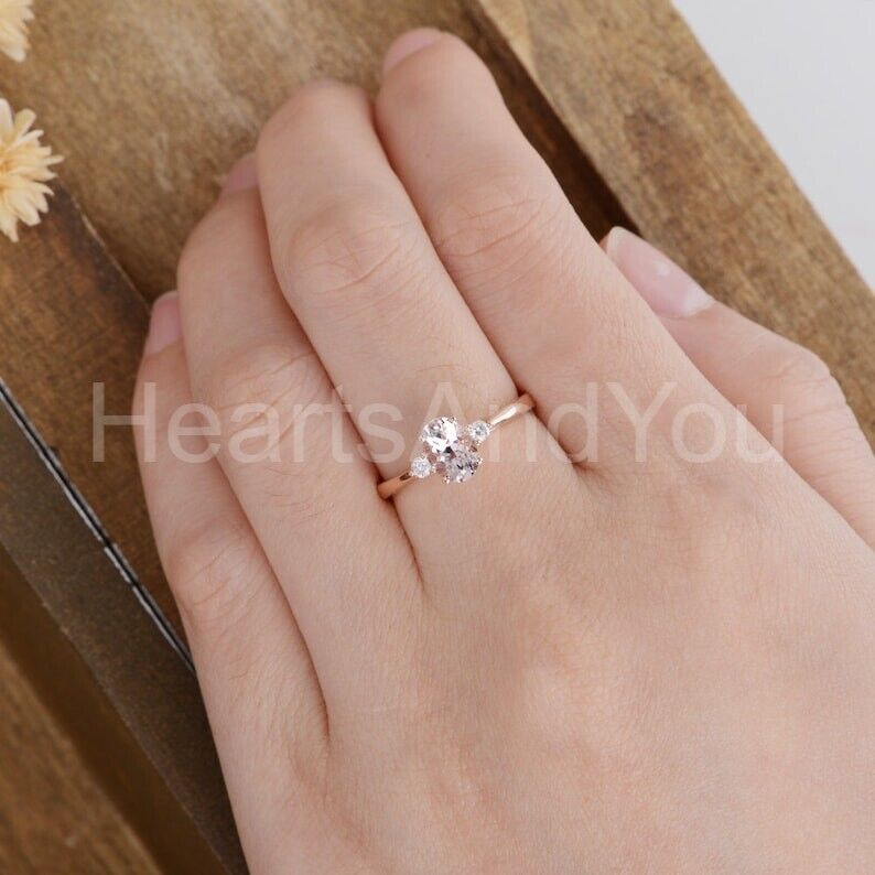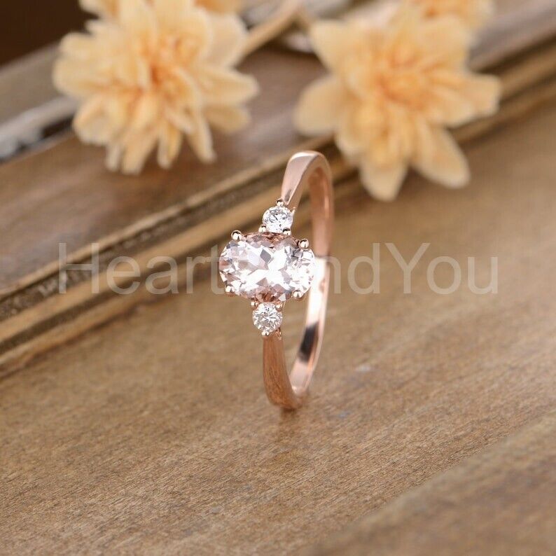 1ct Oval Cut Simulated Morganite Trilogy Engagement Ring 14k Rose Gold Plated