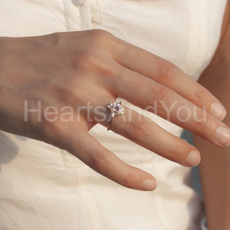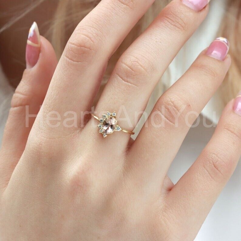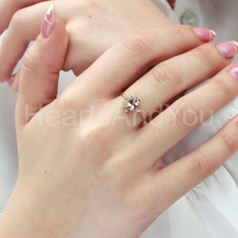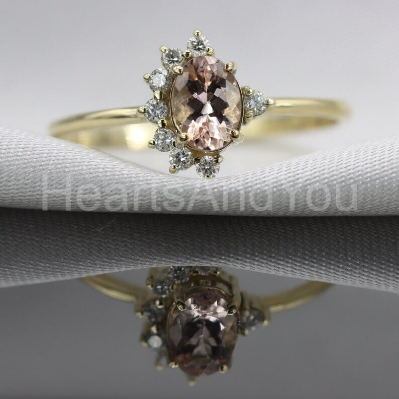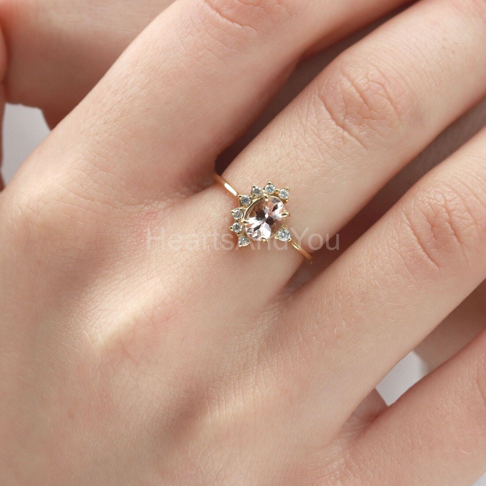1ct Oval Cut Simulated Morganite Unique Engagement Ring 14k Yellow Gold Plated