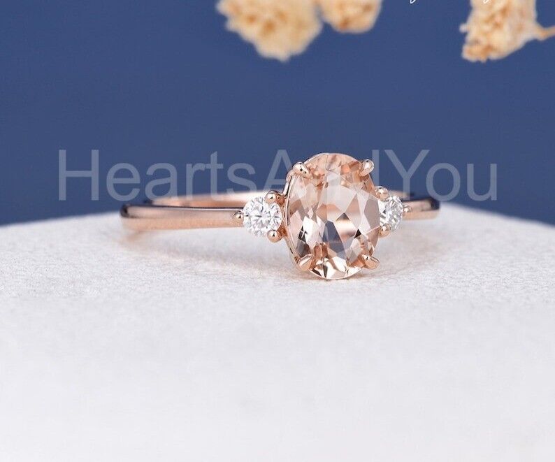 1ct Oval Cut Simulated Peach Morganite Three Stone Ring 14k Rose Gold Plated