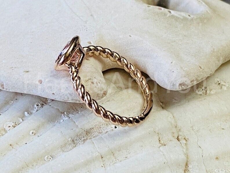 1ct Oval Cut Simulated Peach Morganite Twist Rope Ring 14k White Gold Plated