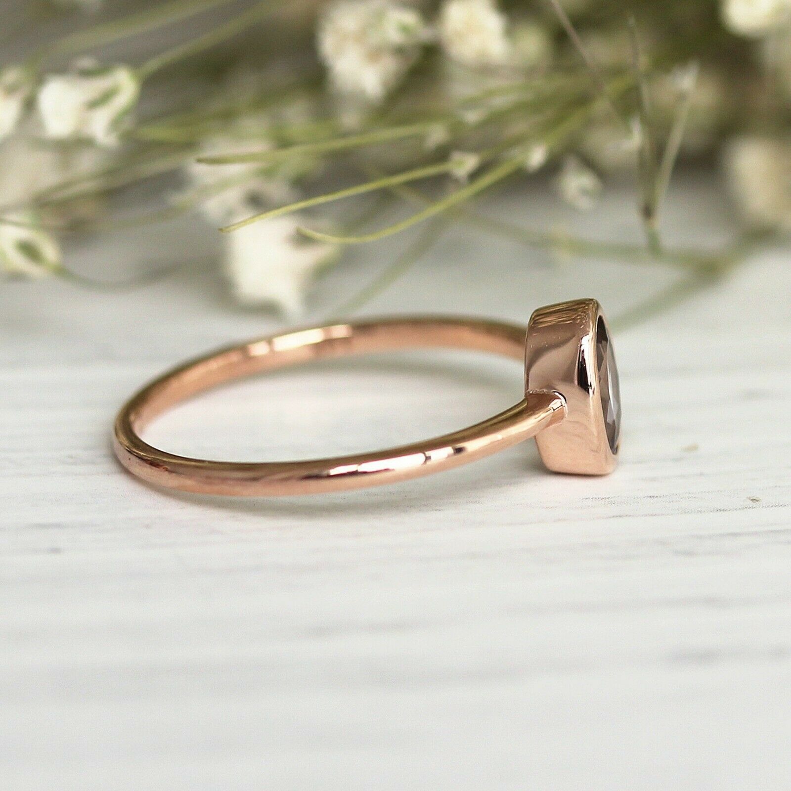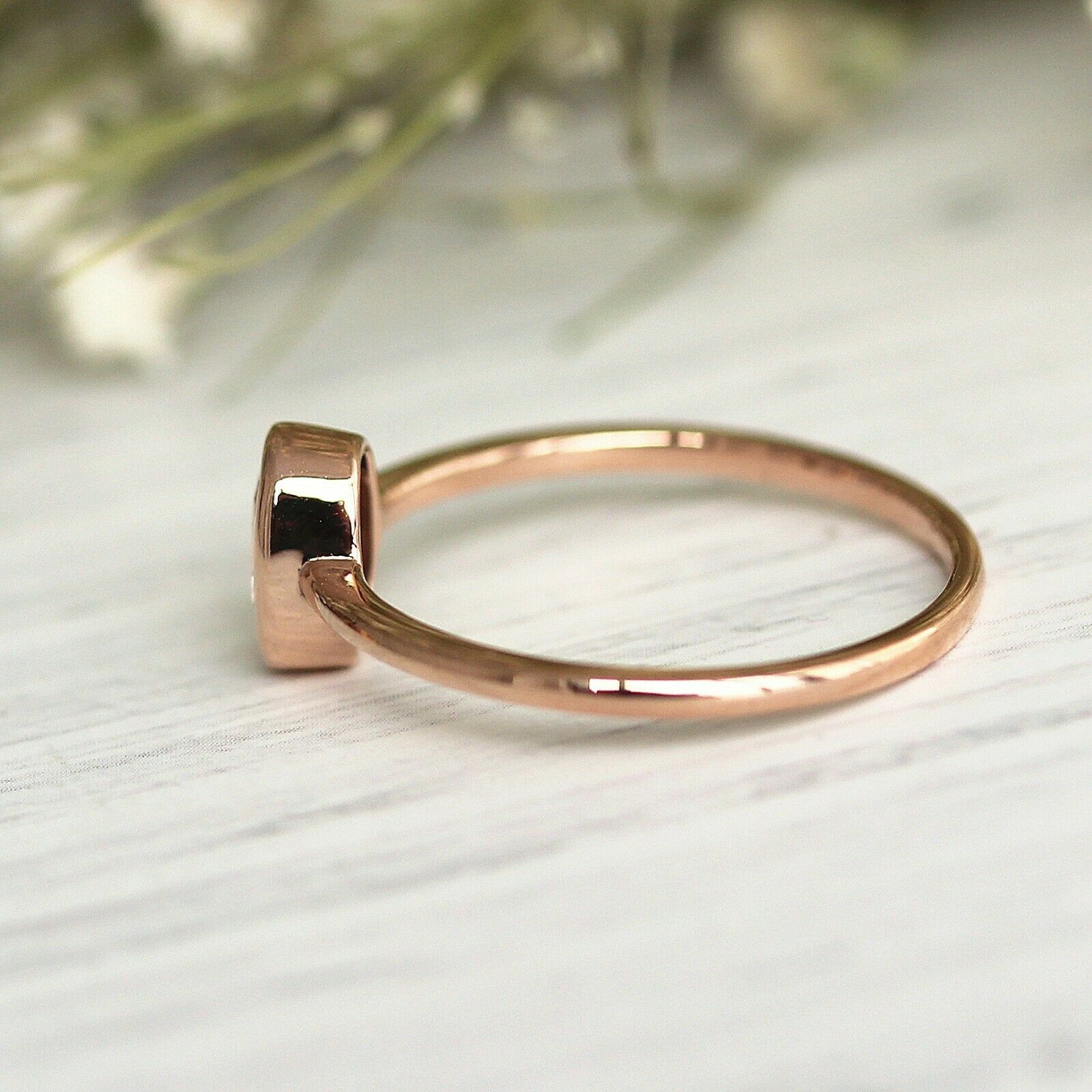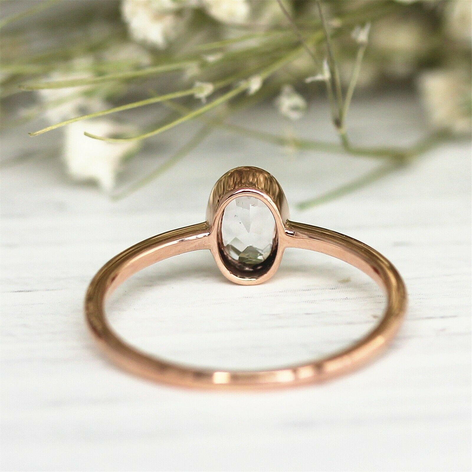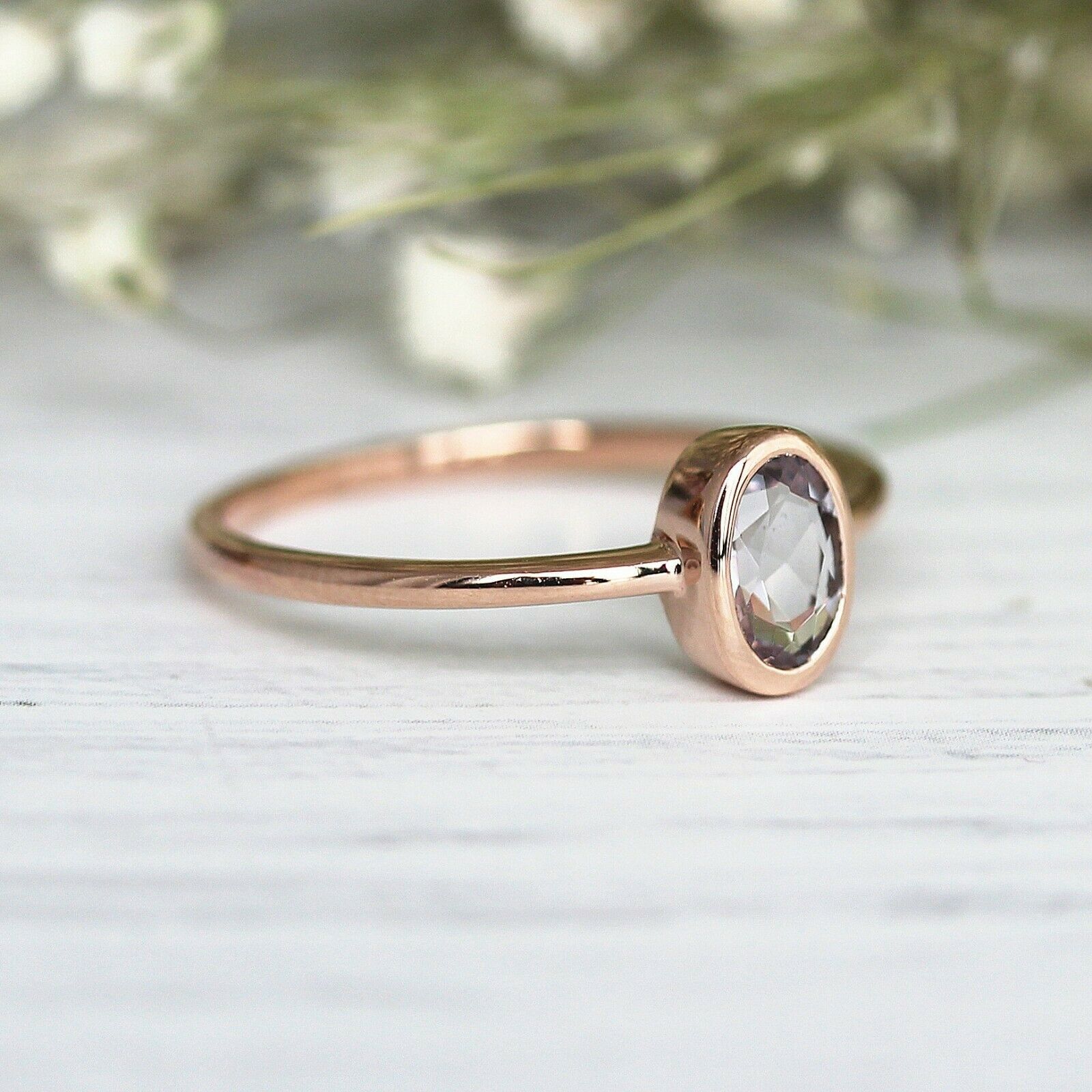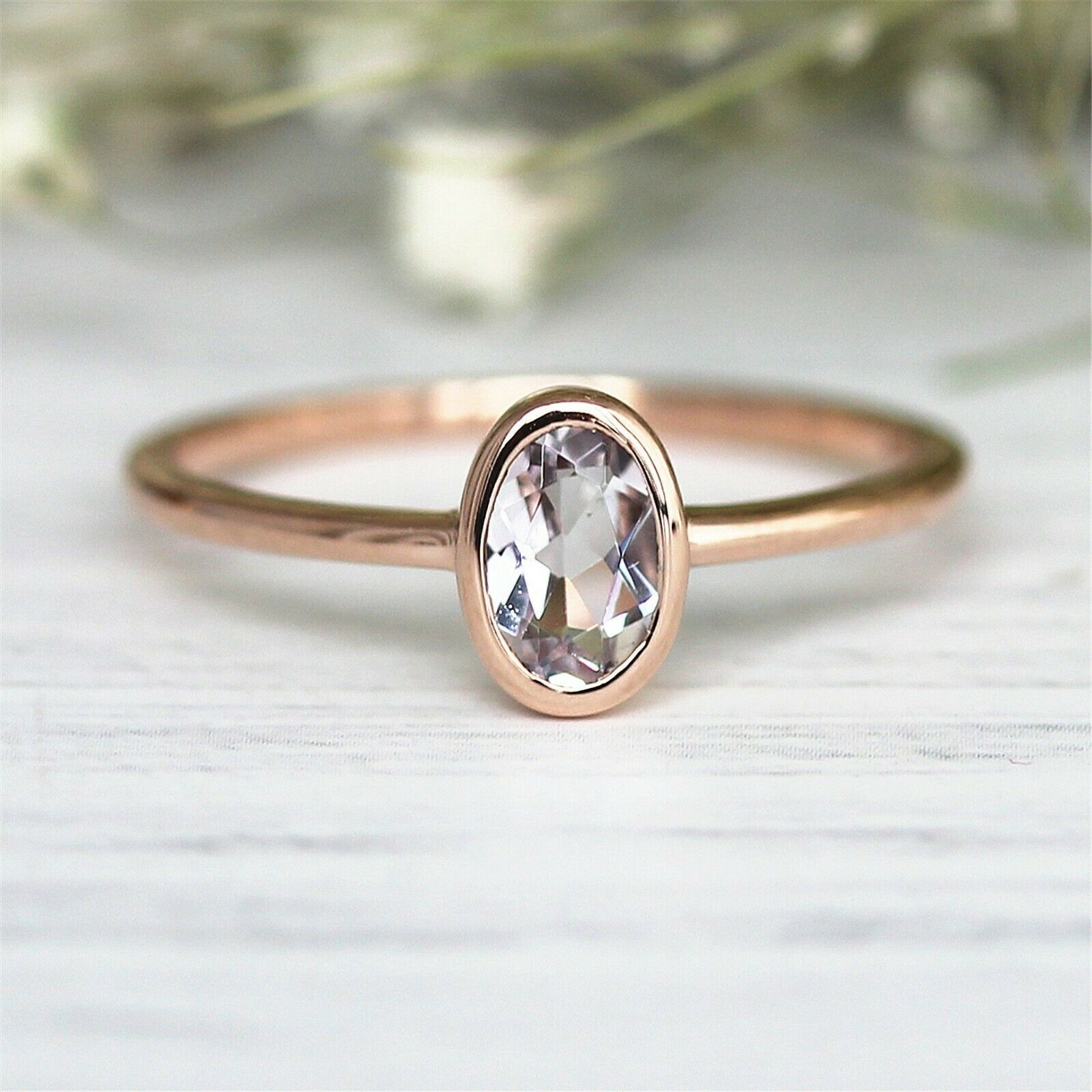 1Ct Oval Peach Morganite Bezel Set Solitaire Engagement Ring 14K Rose Gold Over