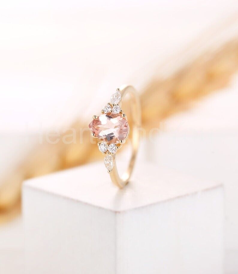 1ct Pear Cut Simulated Morganite Accented Engagement Ring 14k Yellow Gold Plated