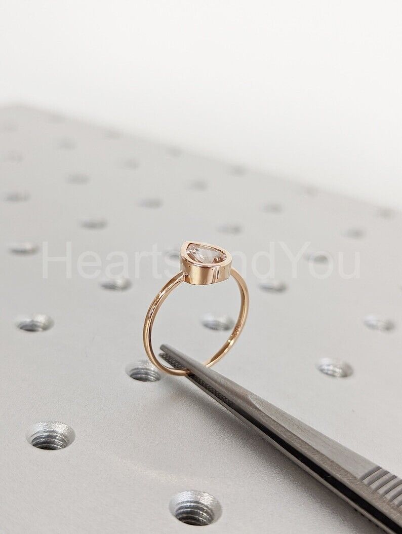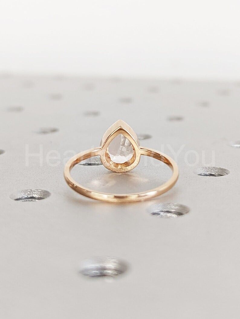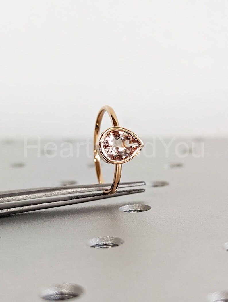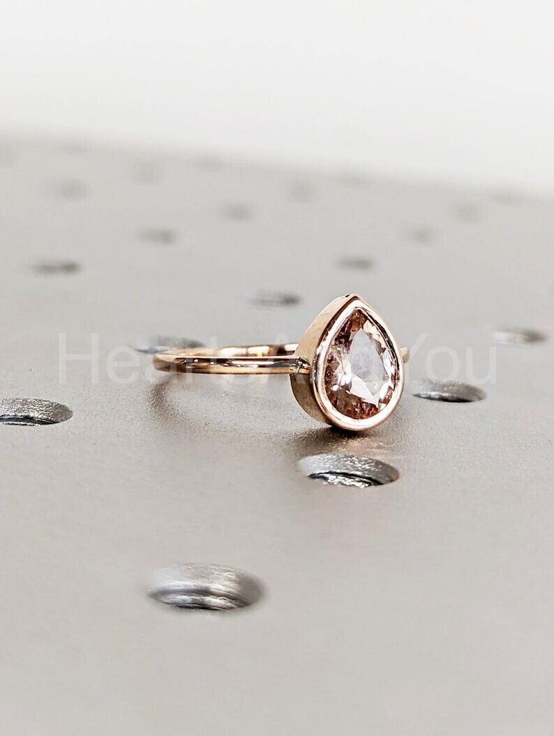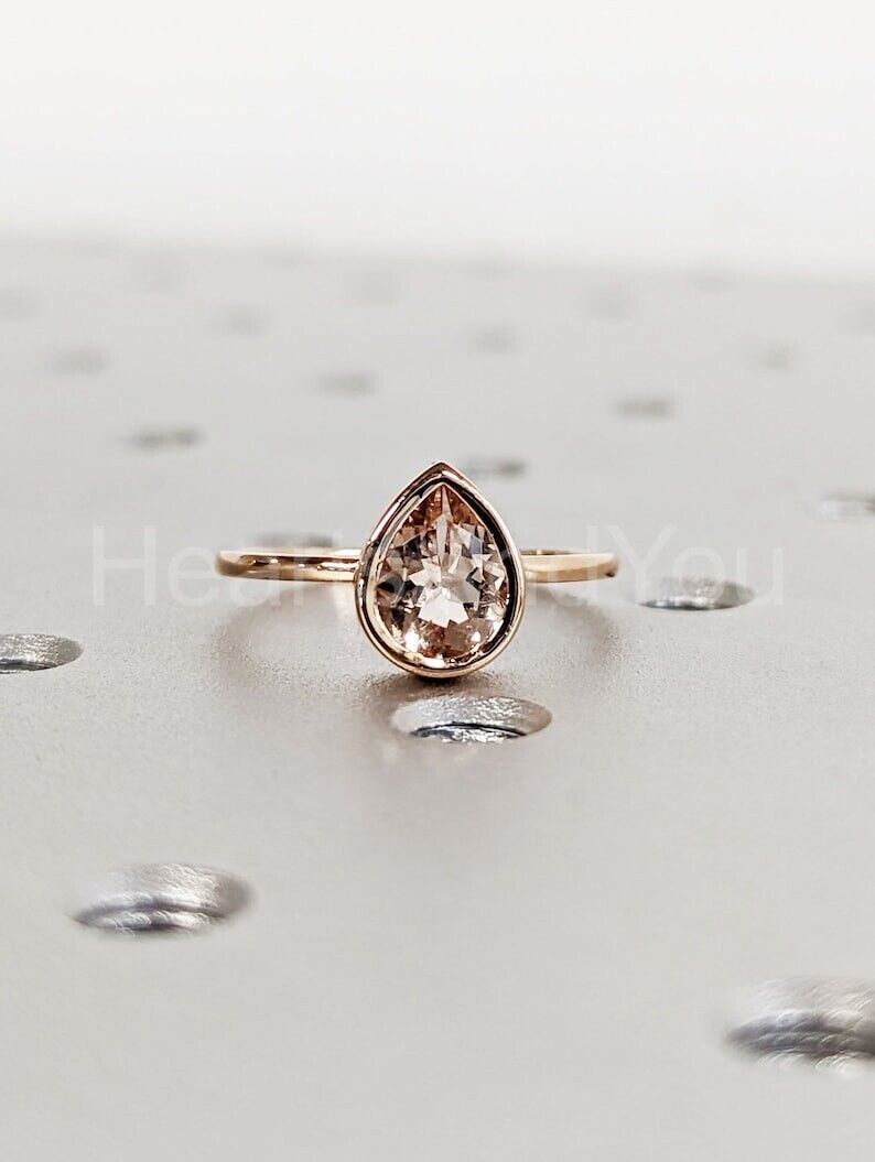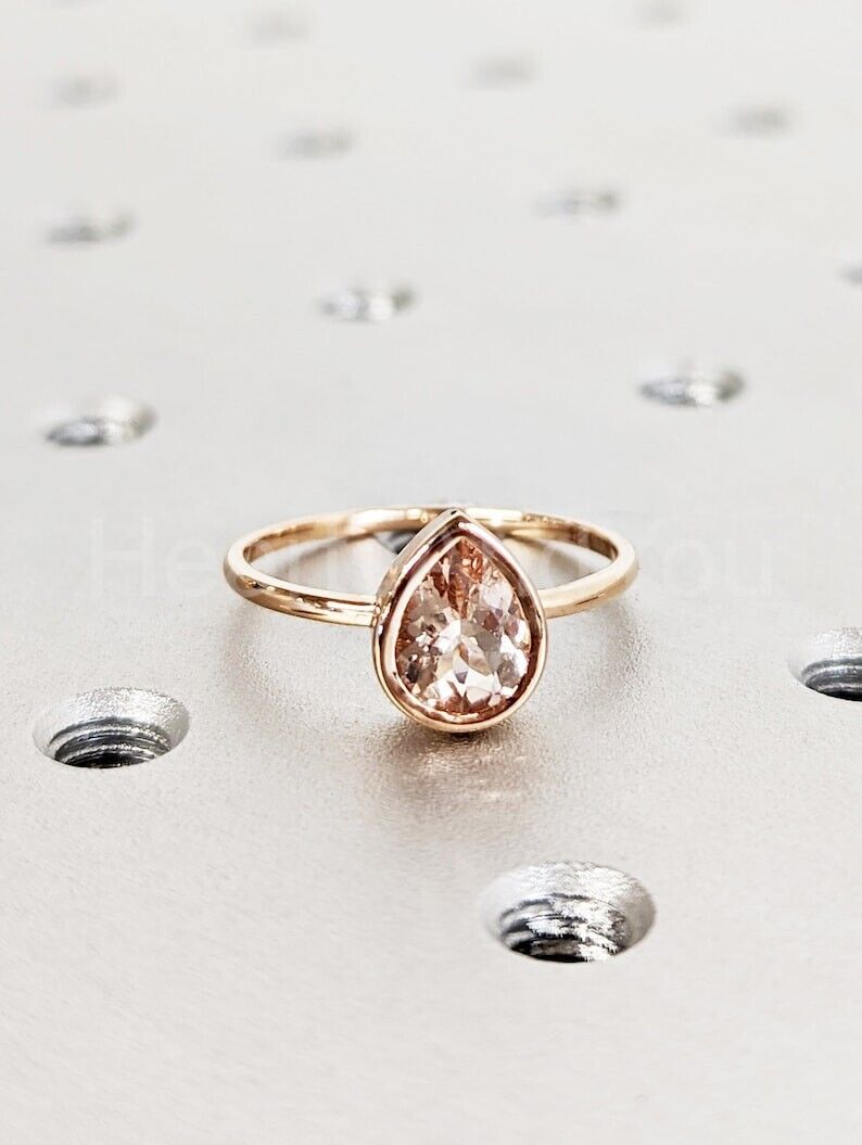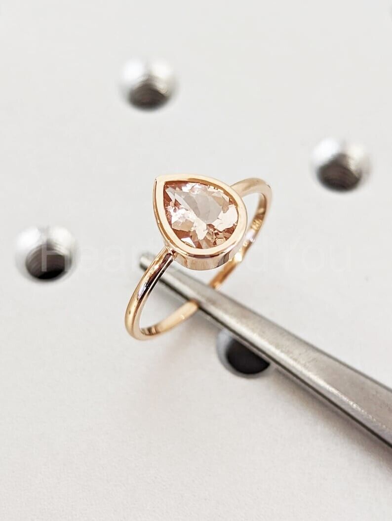 1ct Pear Cut Simulated Morganite Bezel Set Solitaire Ring 14k Yellow Gold Plated