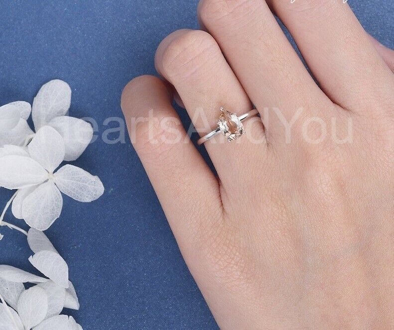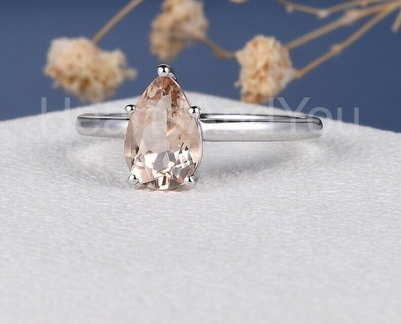 1ct Pear Cut Simulated Morganite Solitaire Engagement Ring 14k White Gold Plated
