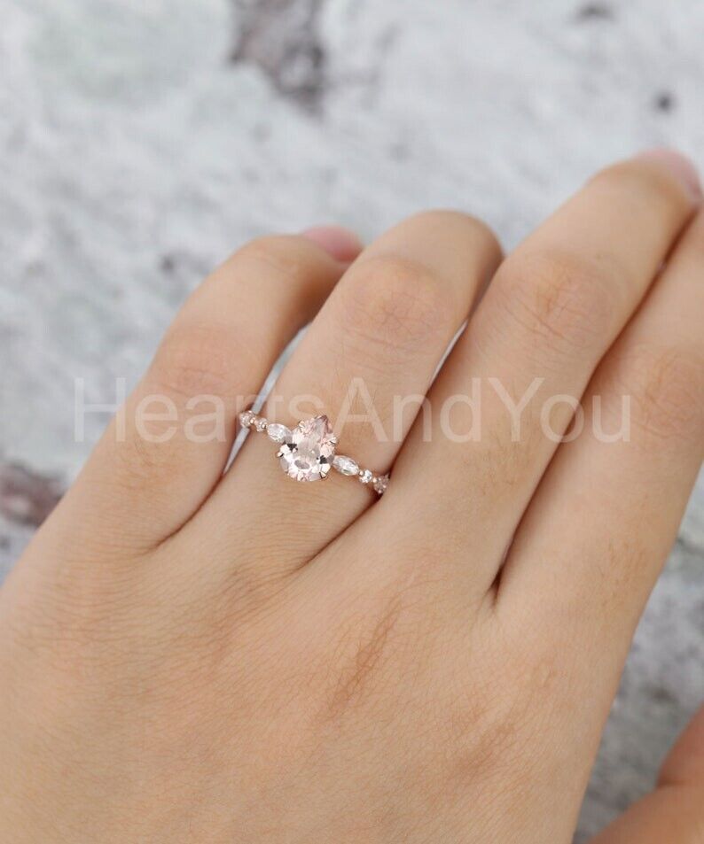 1ct Pear Cut Simulated Morganite Solitaire with Accents Ring 14k Rose Gold Plated