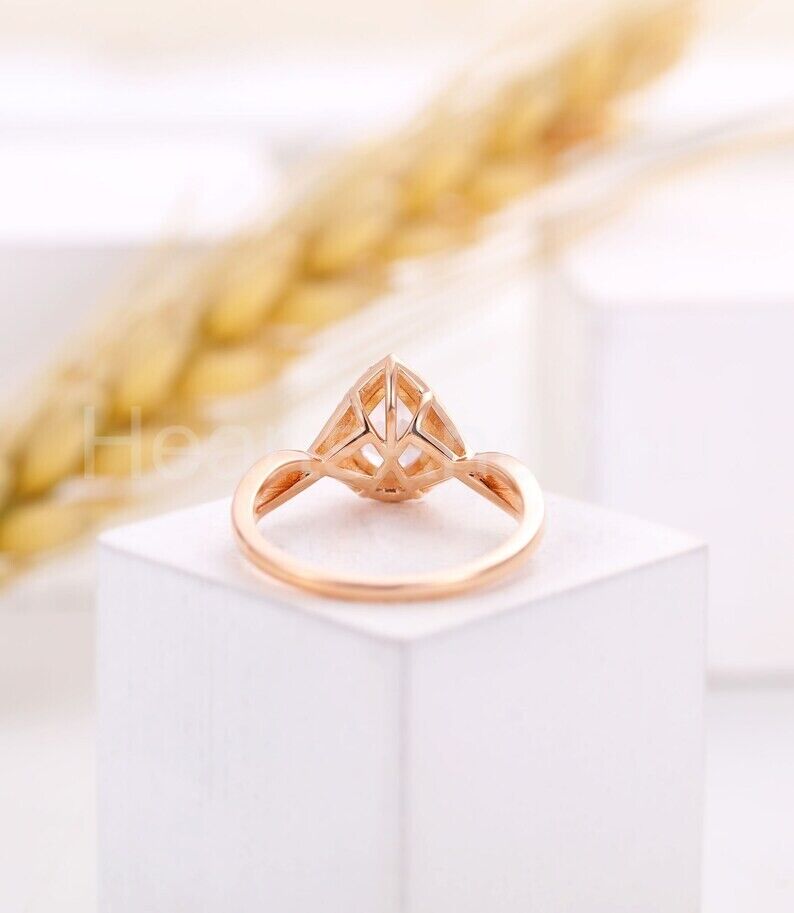 1ct Pear Cut Simulated Peach Morganite Split Halo Engagement Ring 14k Rose Gold Plated