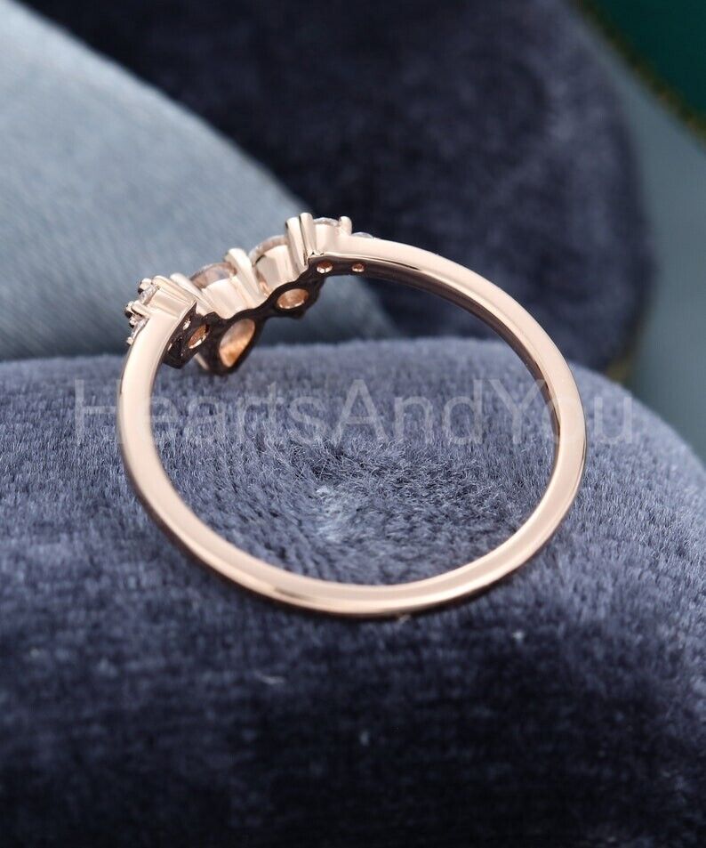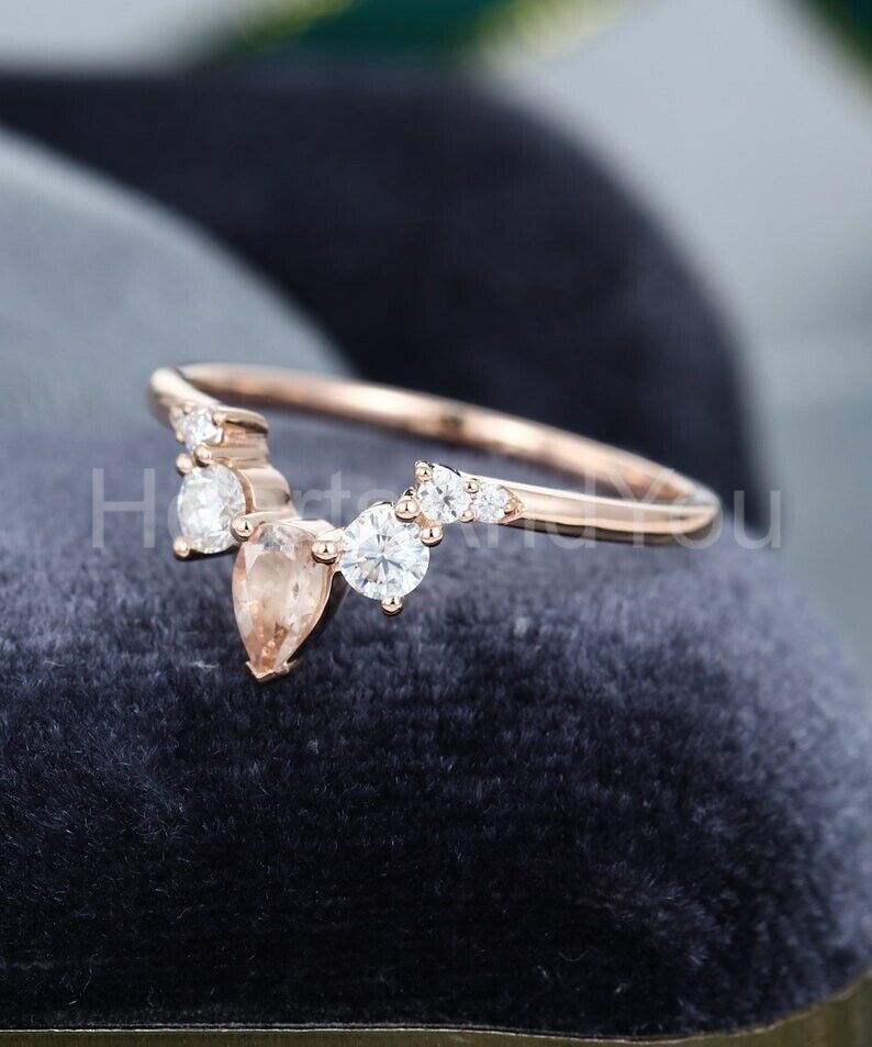 1ct Pear Cut Simulated Peach Morganite Curved Wedding Band 14k Rose Gold Plated