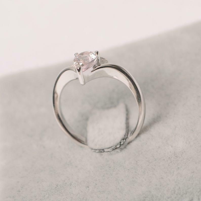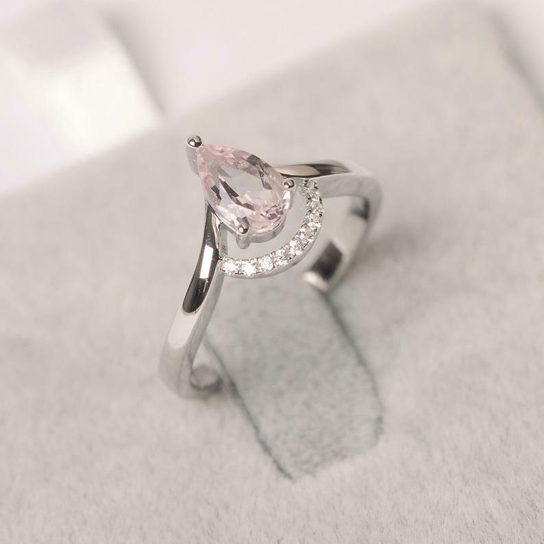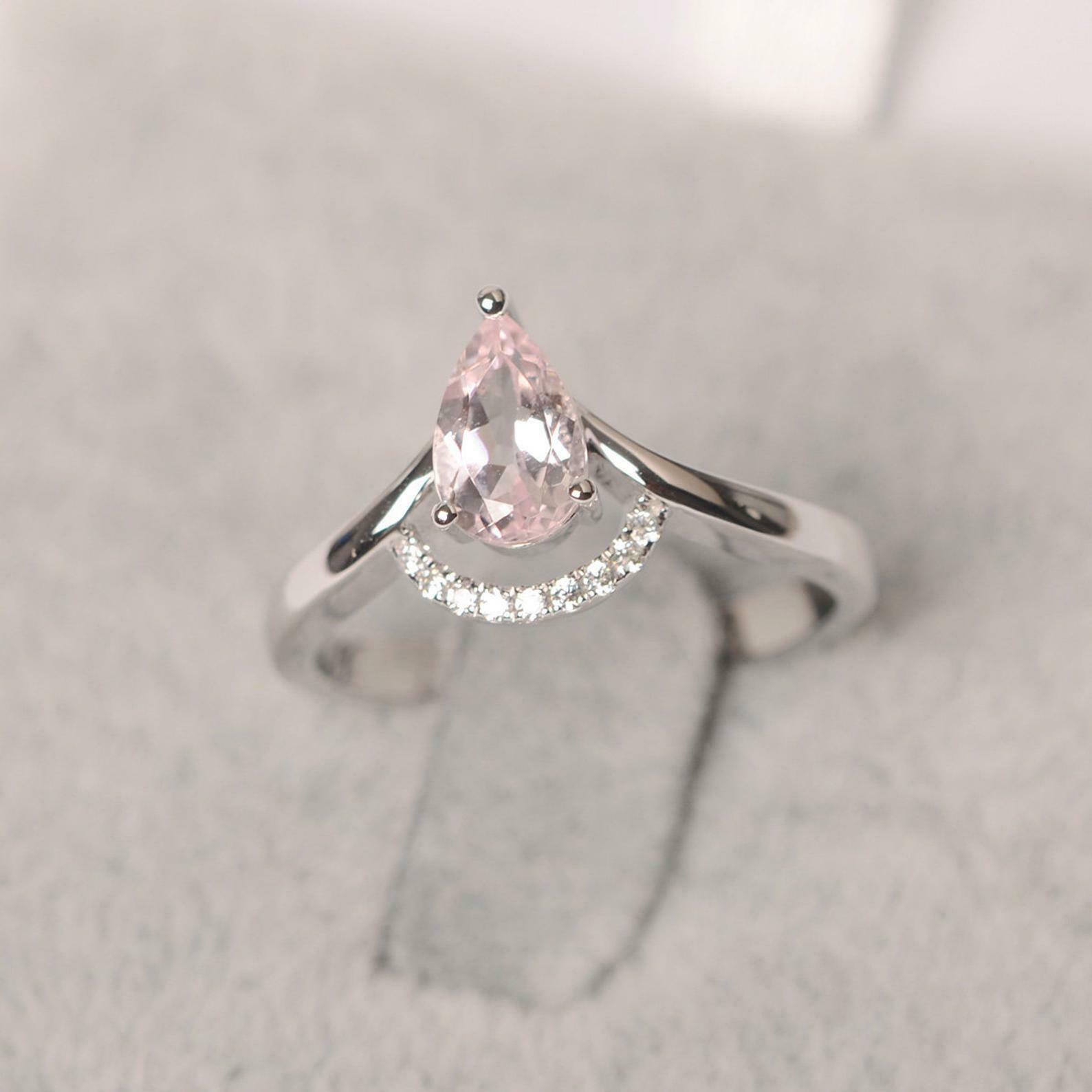 1ct Pear Morganite Curved Chevron Solitaire Round Accent Ring 14k WhiteGold Over