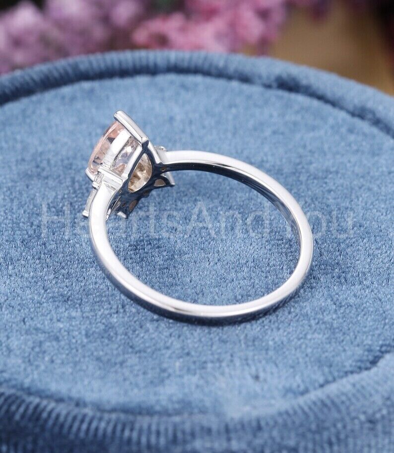 1ct Pear Cut Simulated Peach Morganite Crown Engagement Ring 14k White Gold Plated