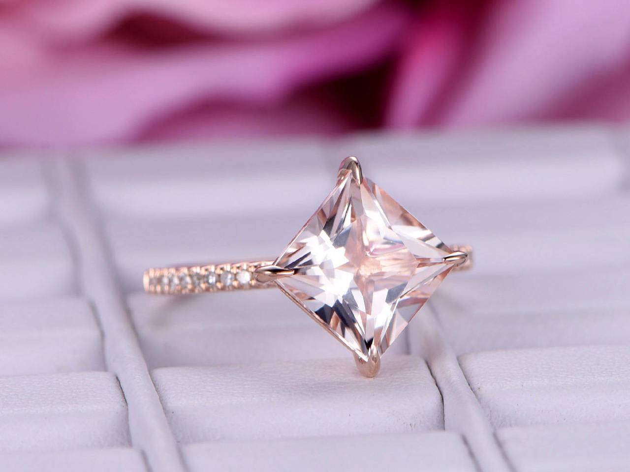 1ct Princess Cut Morganite Engagement Ring Solitaire Accents 14k Rose Gold Over