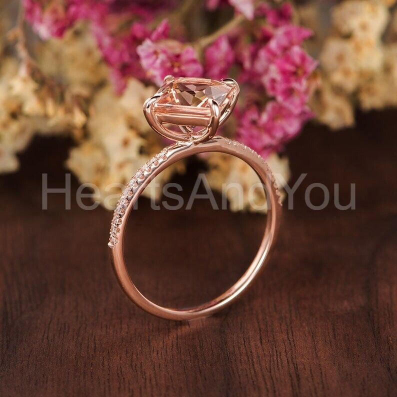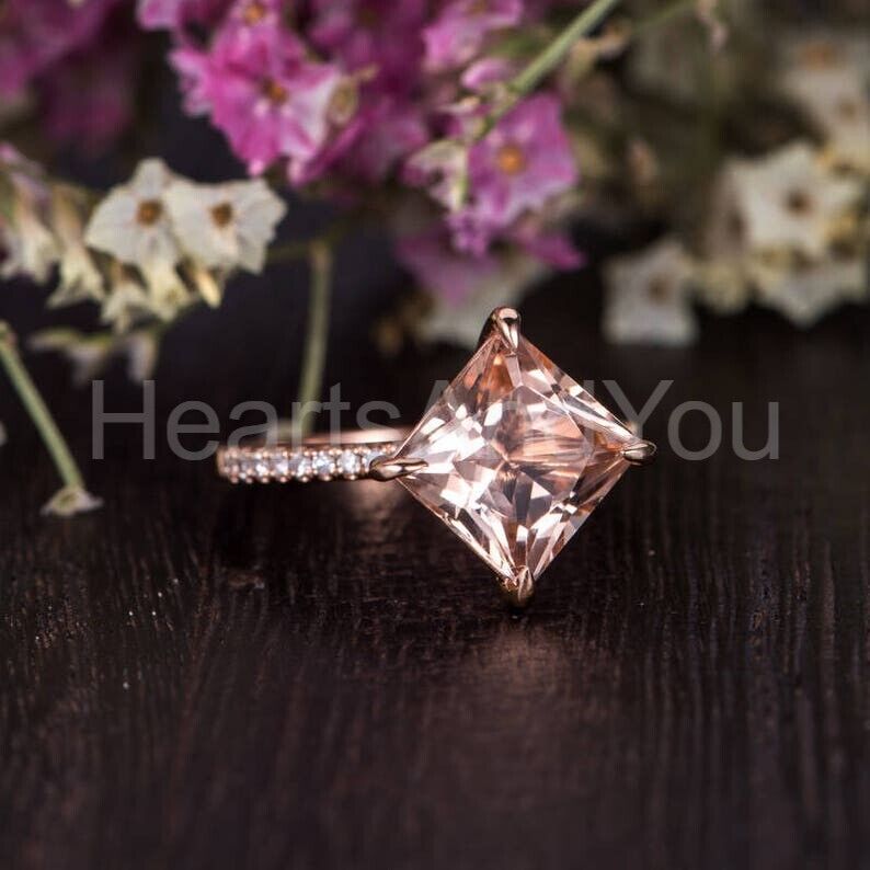 1ct Princess Cut Simulated Peach Morganite Solitaire with Accents Ring 14k Rose Gold Plated