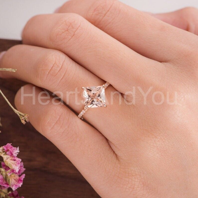 1ct Princess Cut Simulated Morganite Solitaire Accents Ring 14k Rose Gold Plated