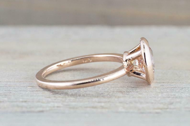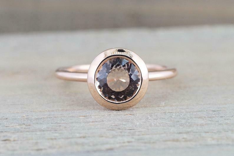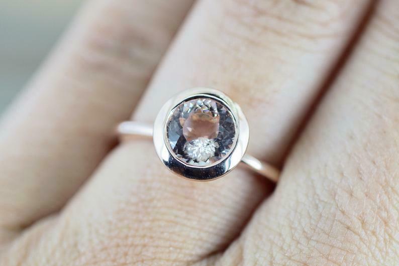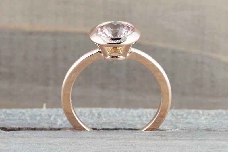 1ct Round Cut Morganite Engagement Ring 14k Rose Gold Finish Bezel Set Solitaire
