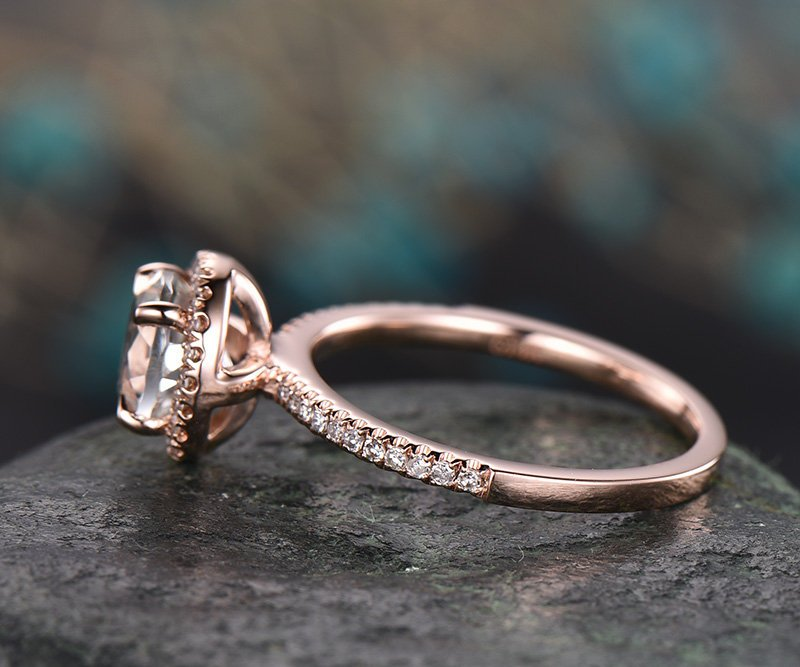 1ct Round Cut Peach Morganite Engagement Ring 14k RoseGold Finish Halo Solitaire