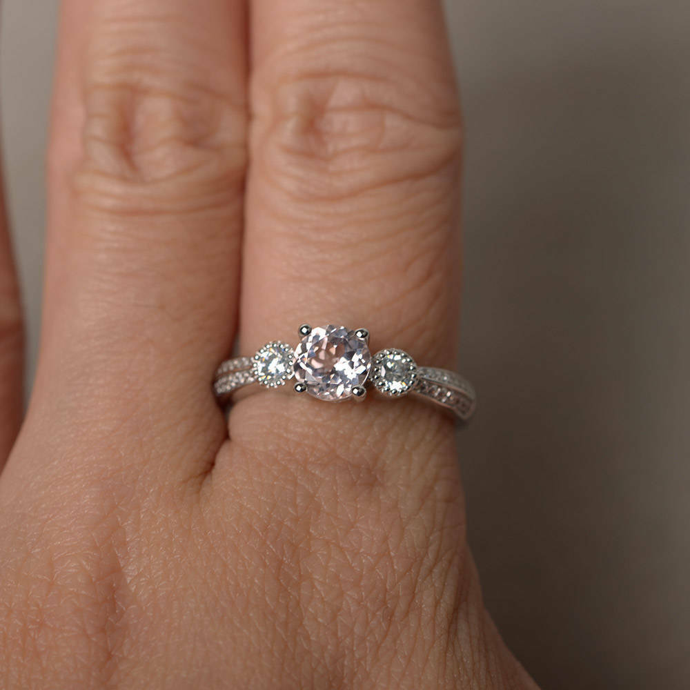 1ct Round Cut Peach Morganite Engagement Ring 14k White Gold Over Diamond Accent