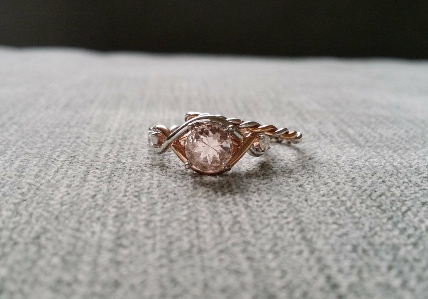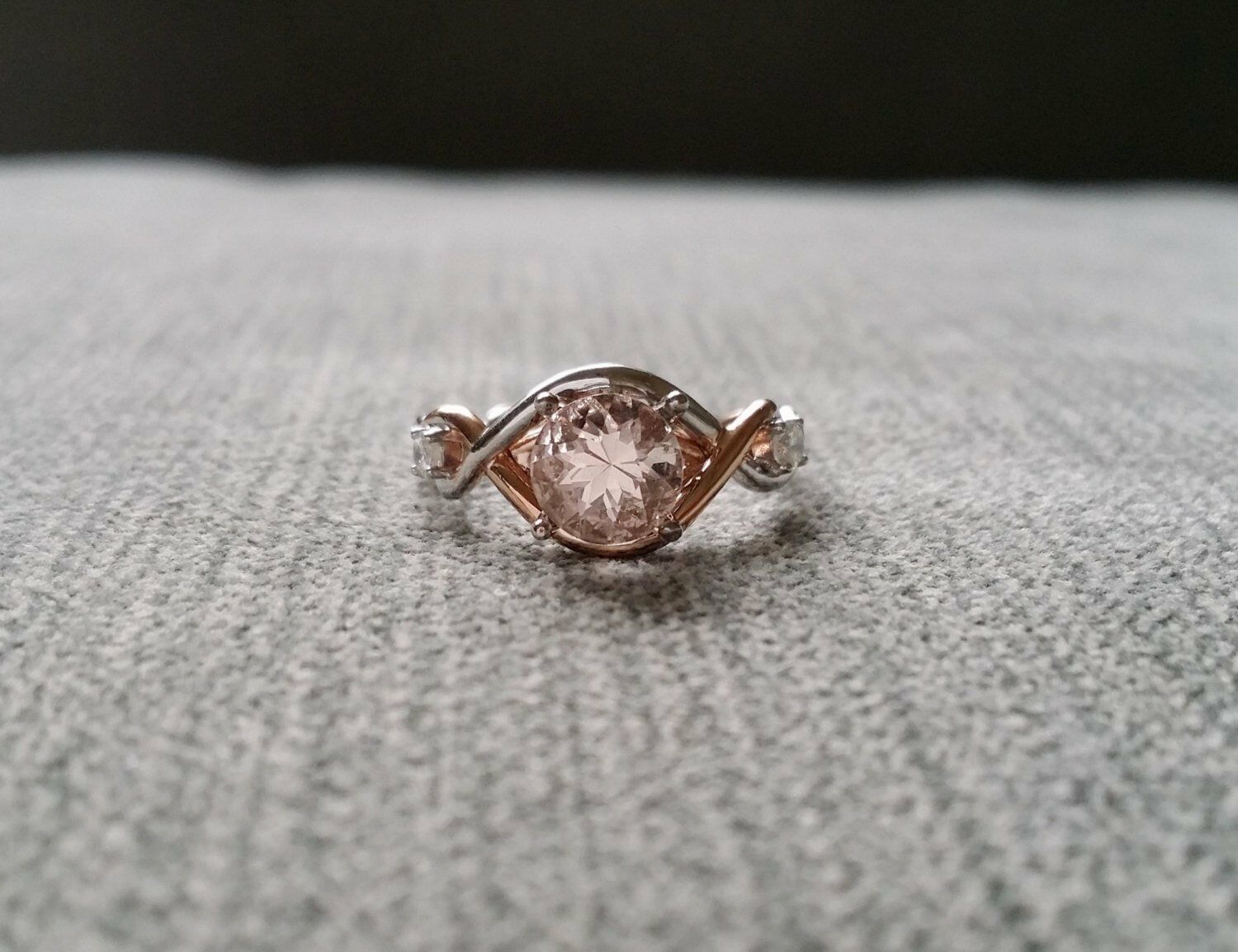 1Ct Round Cut Peach Morganite Infinity Band Engagement Ring 14K Dual Gold Finish