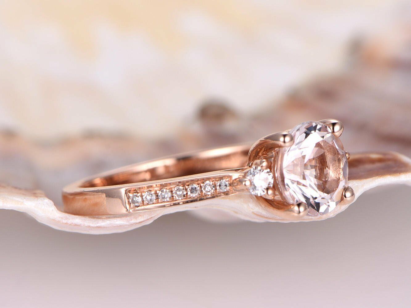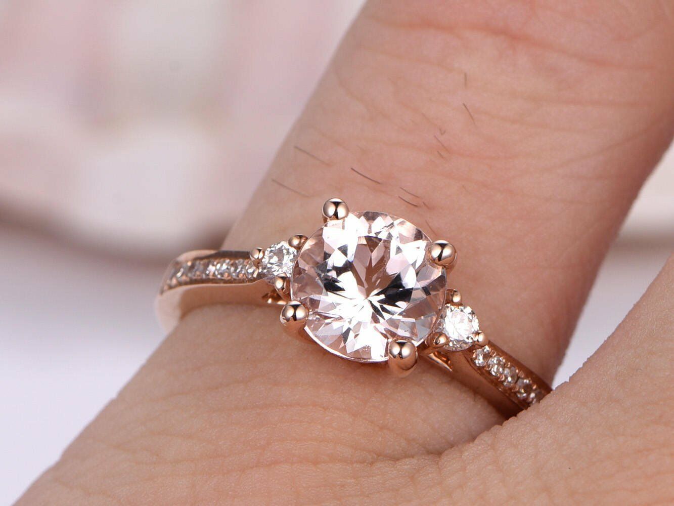 1ct Round Cut Peach Morganite Three Stone Engagement Ring 14k Rose Gold Finish