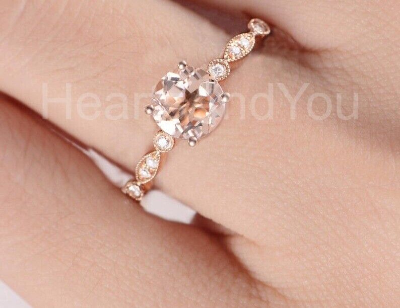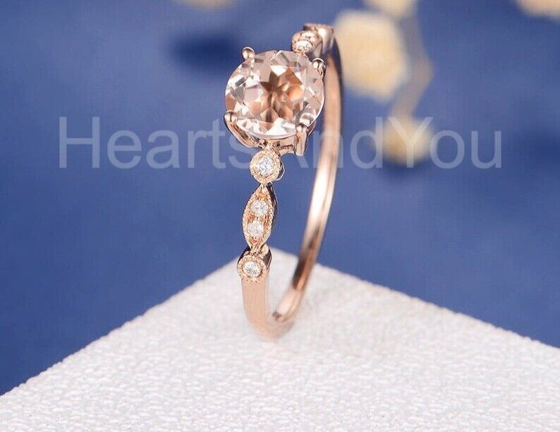 1ct Round Cut Simulated Morganite Accented Engagement Ring 14k Rose Gold Plated