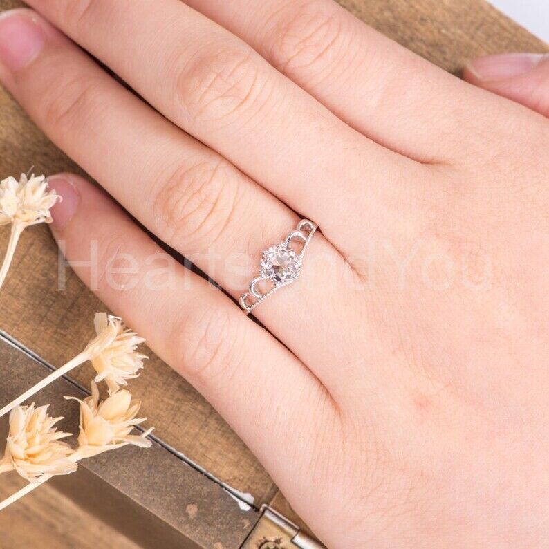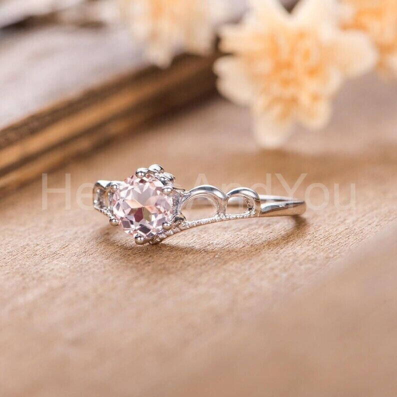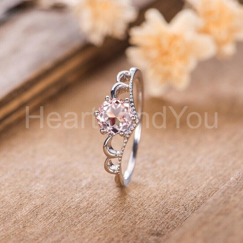 1ct Round Cut Simulated Morganite Crown Engagement Ring 14k White Gold Plated