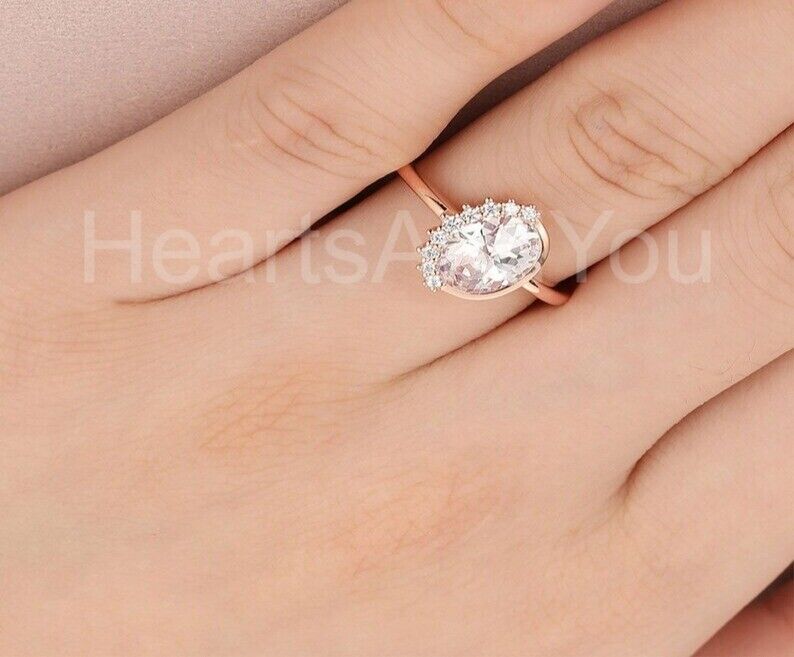 1ct Round Cut Simulated Morganite Crown Minimalist Ring 14k Rose Gold Plated