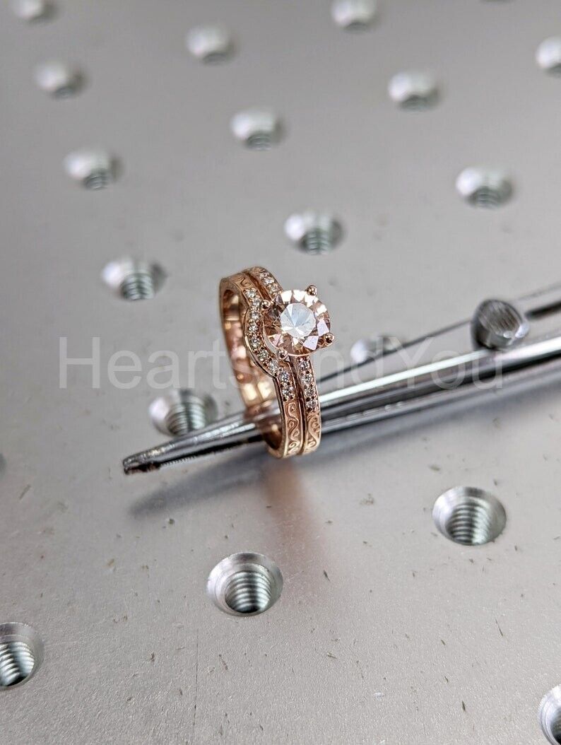 1ct Round Cut Simulated Morganite Curved Band Bridal Set 14k Rose Gold Plated