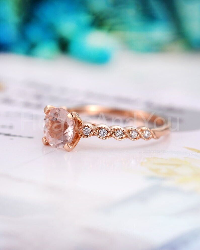 1ct Round Cut Simulated Morganite Milgrain Engagement Ring 14k Rose Gold Plated