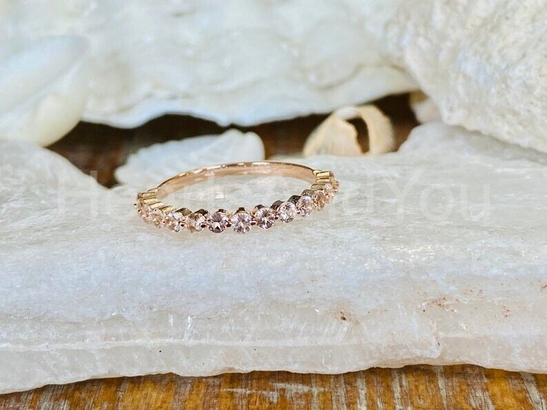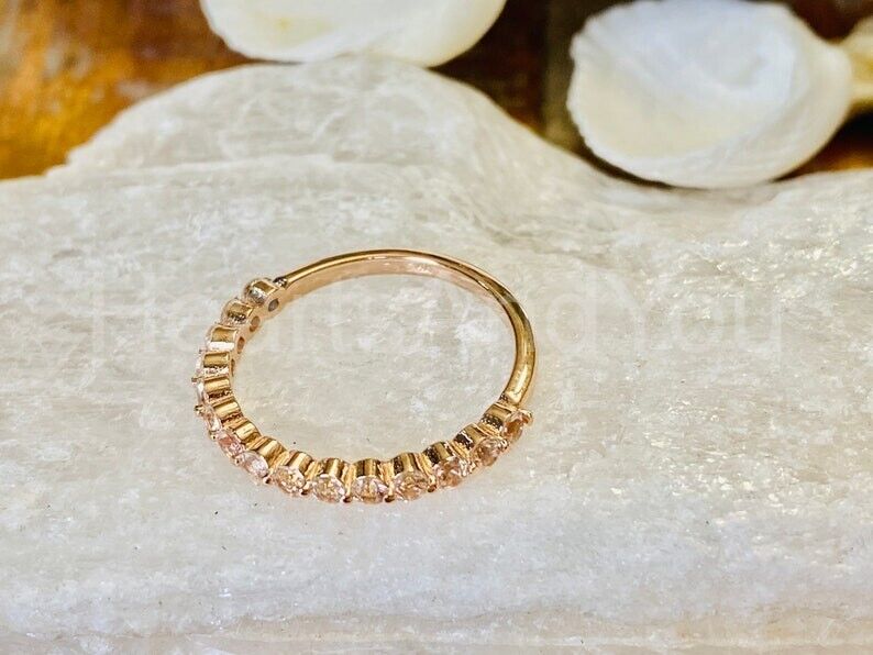 1ct Round Cut Simulated Morganite Stackable Wedding Band 14k Rose Gold Plated