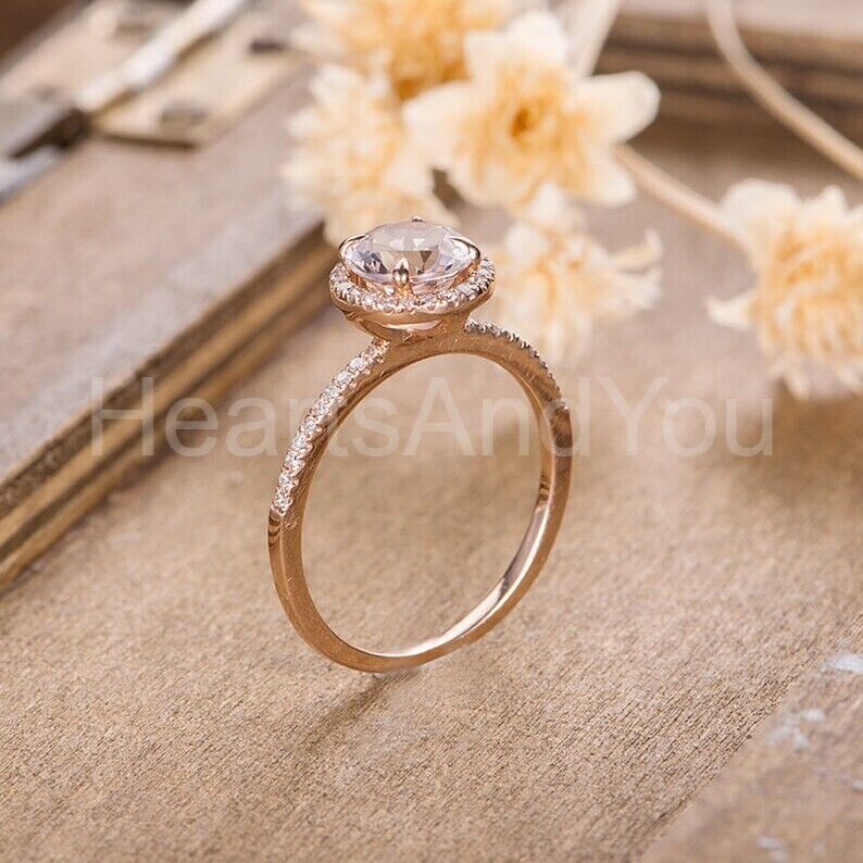 1ct Round Cut Simulated Peach Morganite Accented Halo Ring 14k Rose Gold Plated