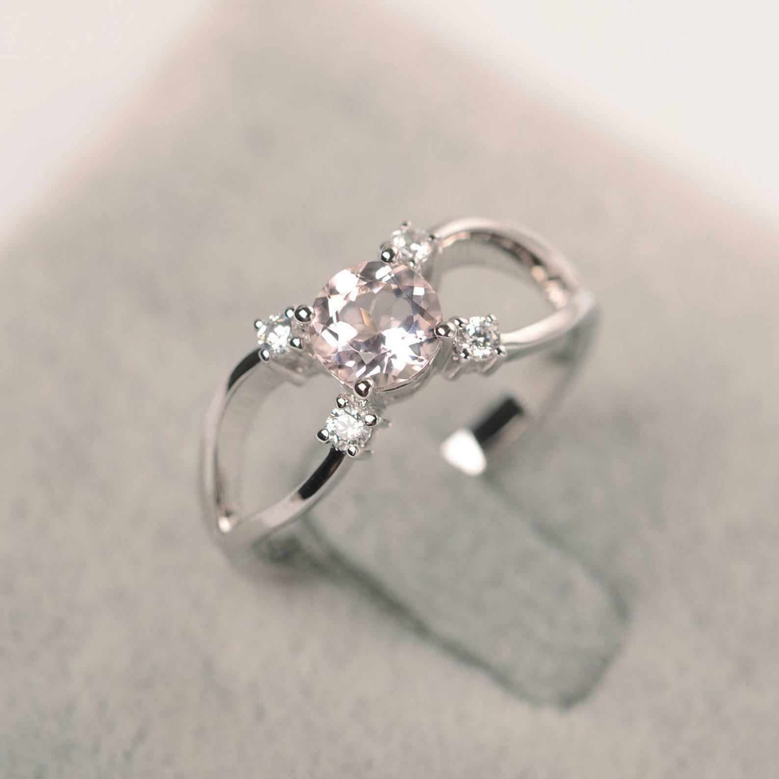 1ct Round Morganite Split Band Solitaire Round Accent Ring 14k White Gold Over