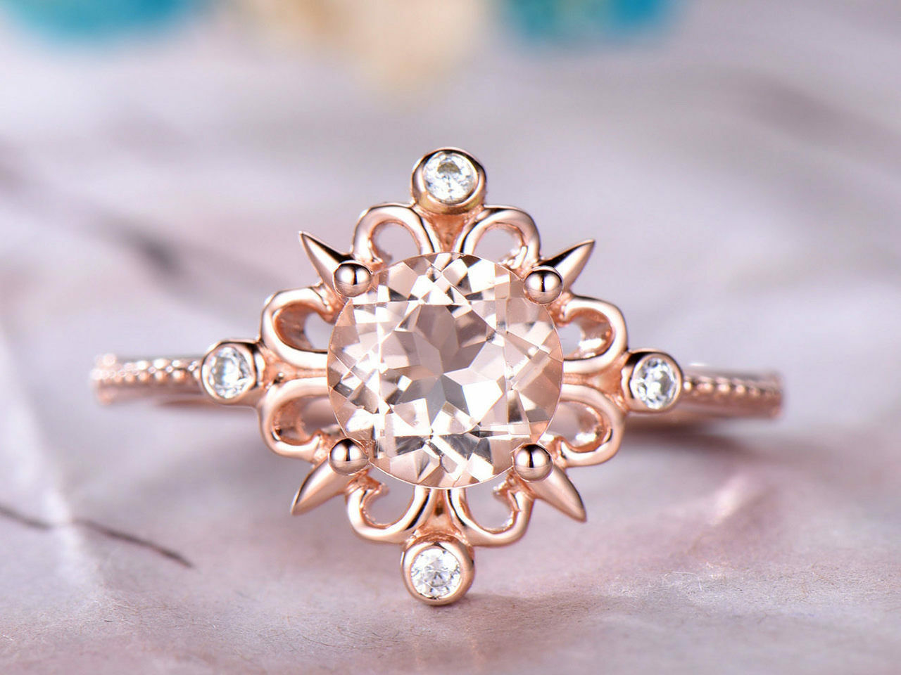 1ct Round Peach Morganite Engagement Ring 14k Rose Gold Finish Stackable Promise