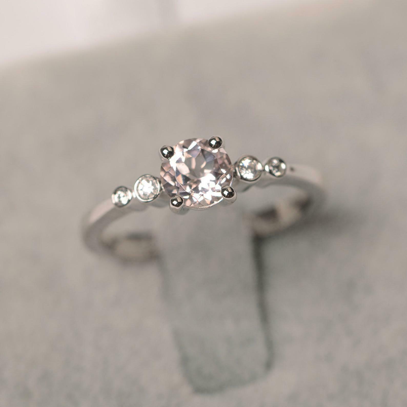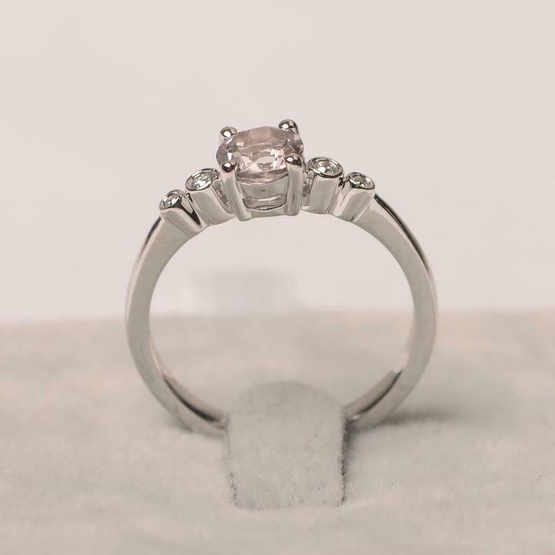 1ct Round Peach Morganite Engagement Ring 5 Stone Solitaire 14k White Gold Over