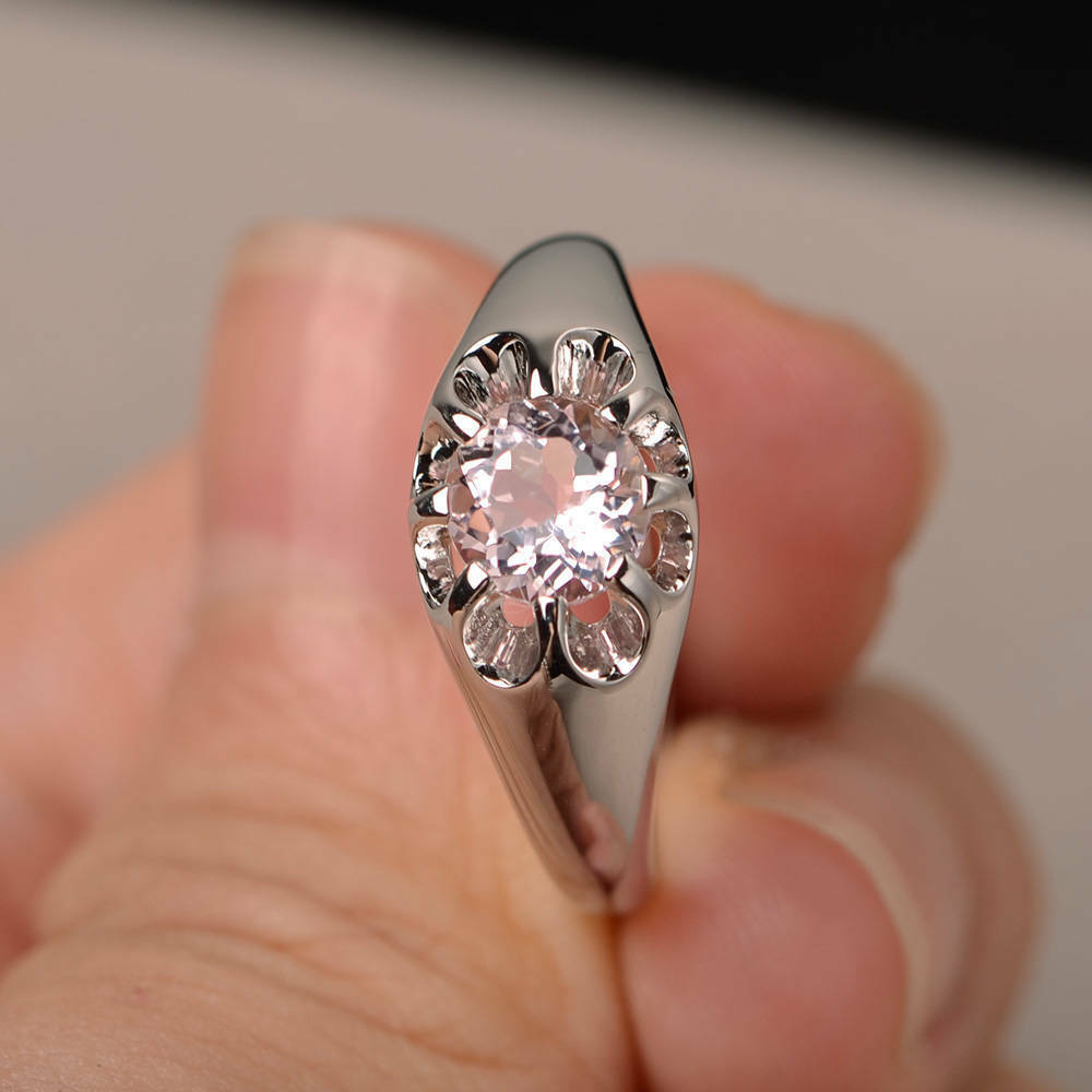 1ct Round Peach Morganite Floral Solitaire Engagement Ring 14k White Gold Finish