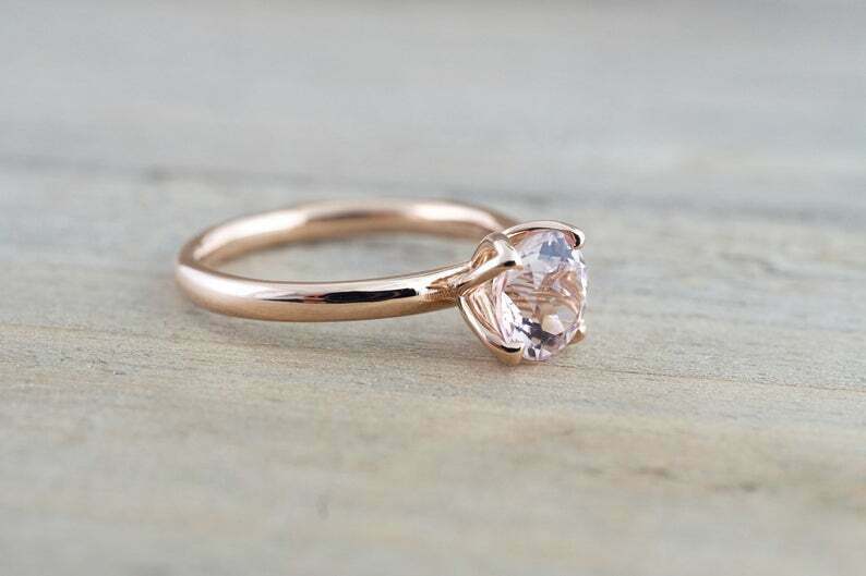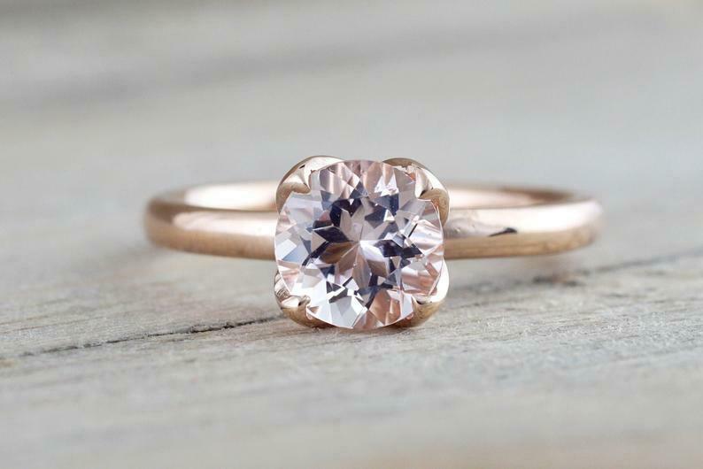 1ct Round Peach Morganite Lotus Flower Petal Solitaire Ring 14k Rose Gold Finish